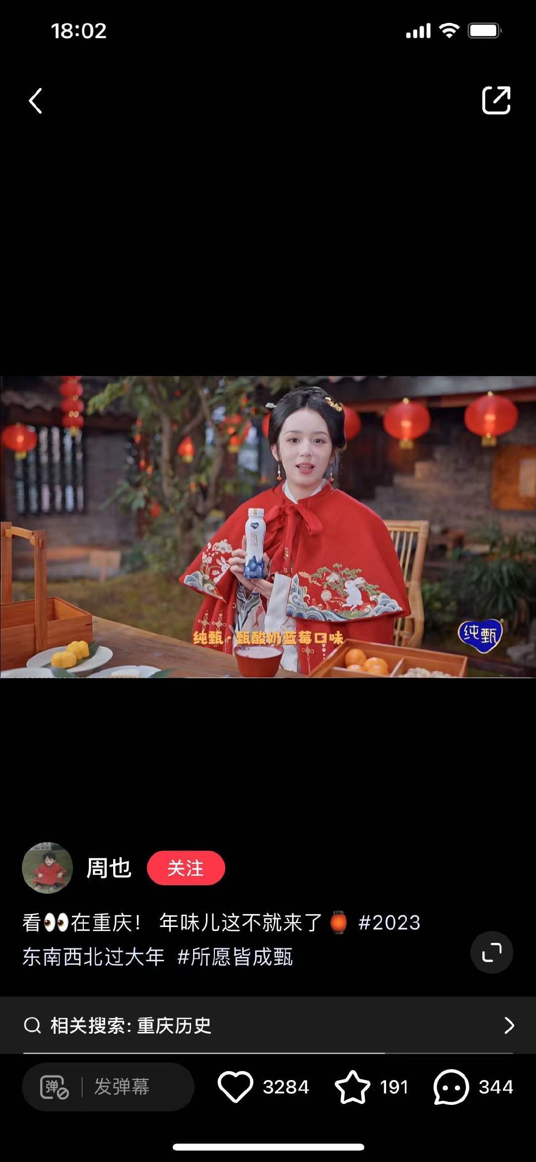 #周也新春汉服大片# 这一次的汉服大片真是太有质感了,而且纯甄甄酸奶看起来就是比较美味的,还有谁没有看一下周也的盛世美颜呢?抓紧来get一下#2023东南西北过大年#