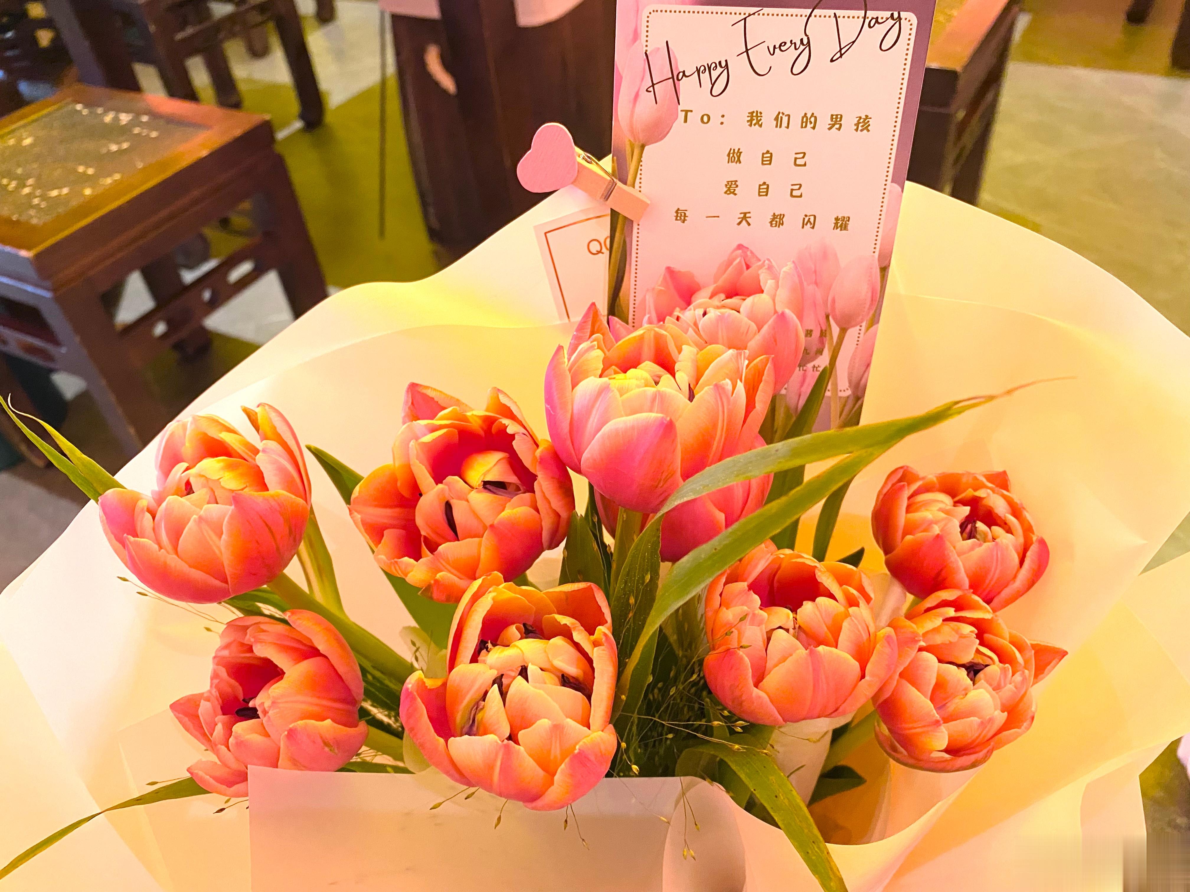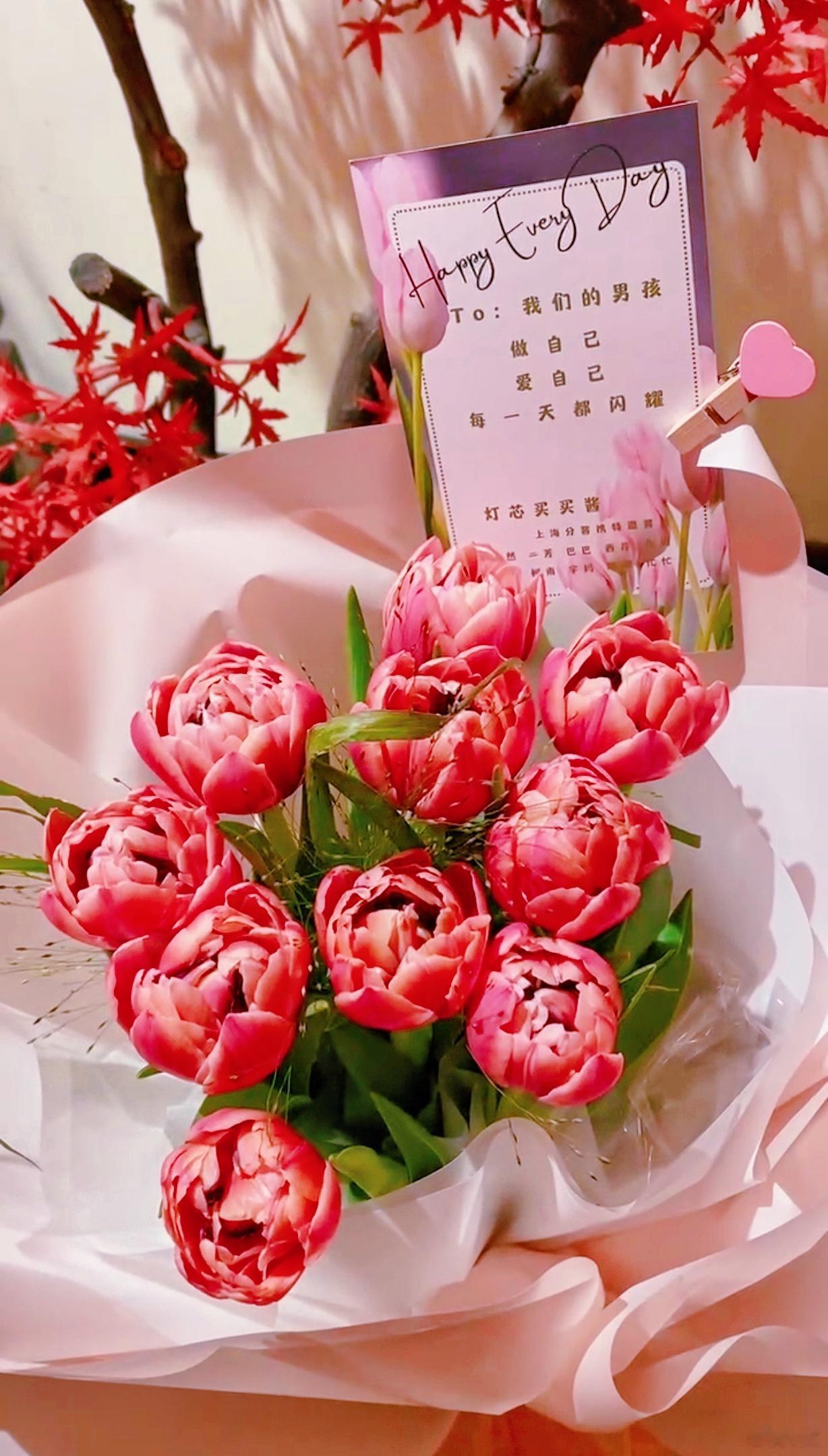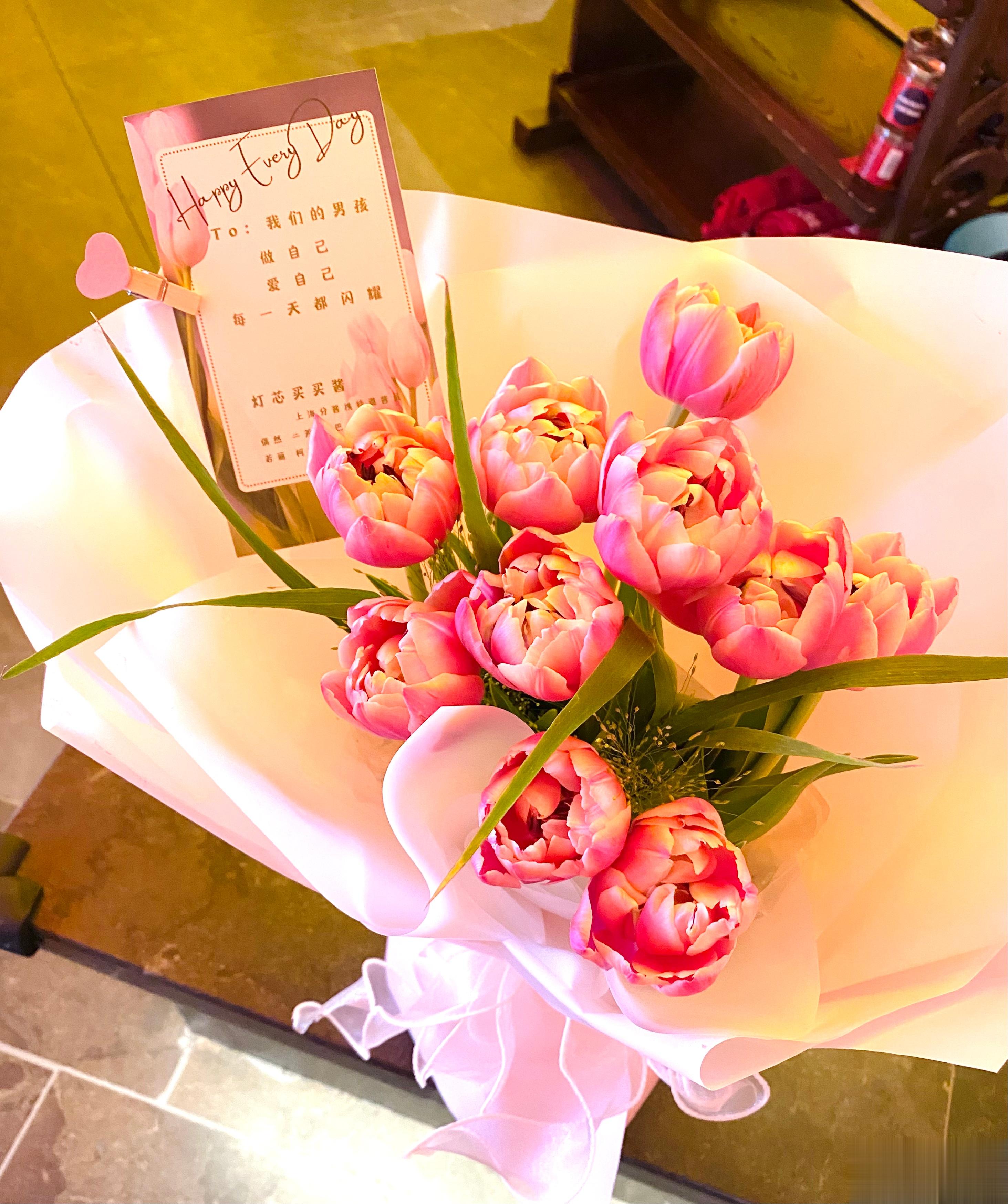 @灯芯买买酱 上海分酱携特邀酱员@勇敢的芯dddddd @西岸之东 @IMBa1aD1 @娜伍丝佳的风之谷 @若丽_小妖精 @九间 @名侦探柯南就是我 @忙不停H @多余的关心1975 还有我,共十位姐妹为上海火社送上漂亮可爱的21束【草莓松饼】郁金香给我们的男孩,她的花语是——爱的告白&永恒的祝福🌷