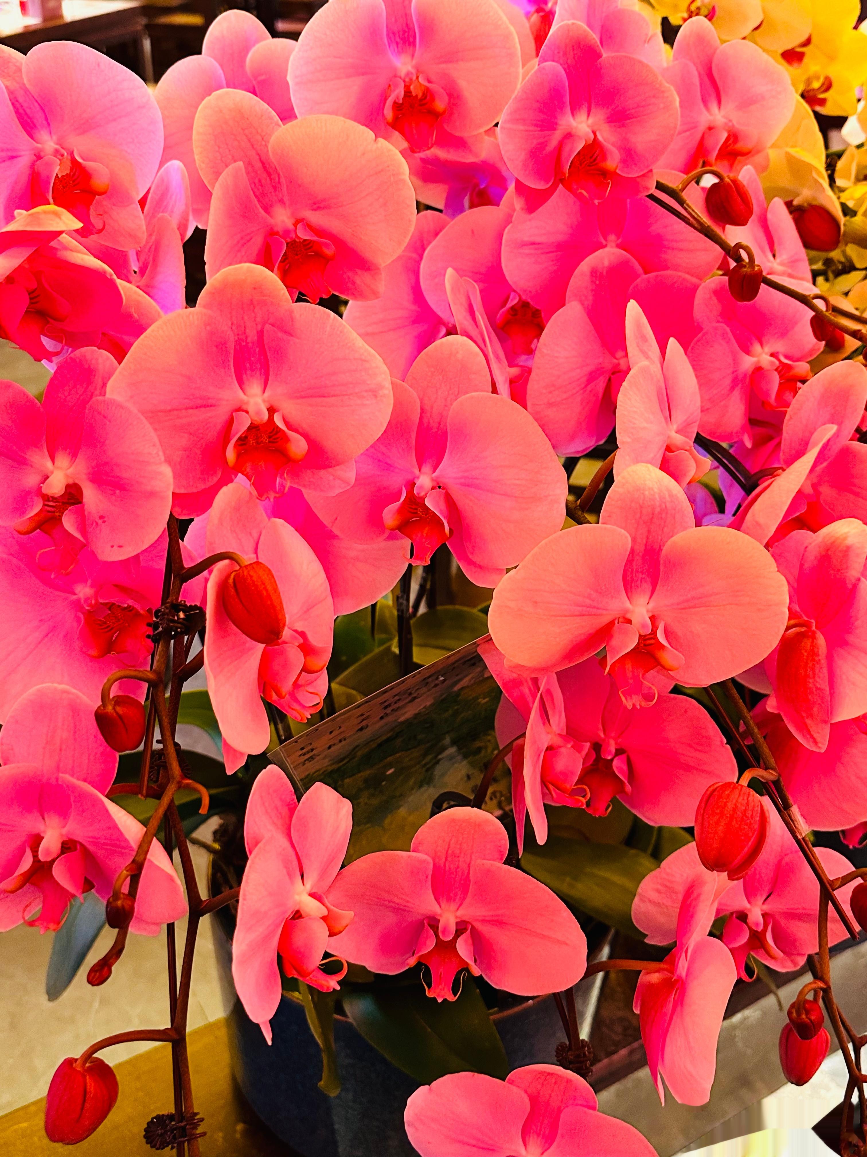 热烈的玫红,灿烂的金黄,温柔的粉色,各色的兰花交相辉映,寄予我们的爱意和思念。