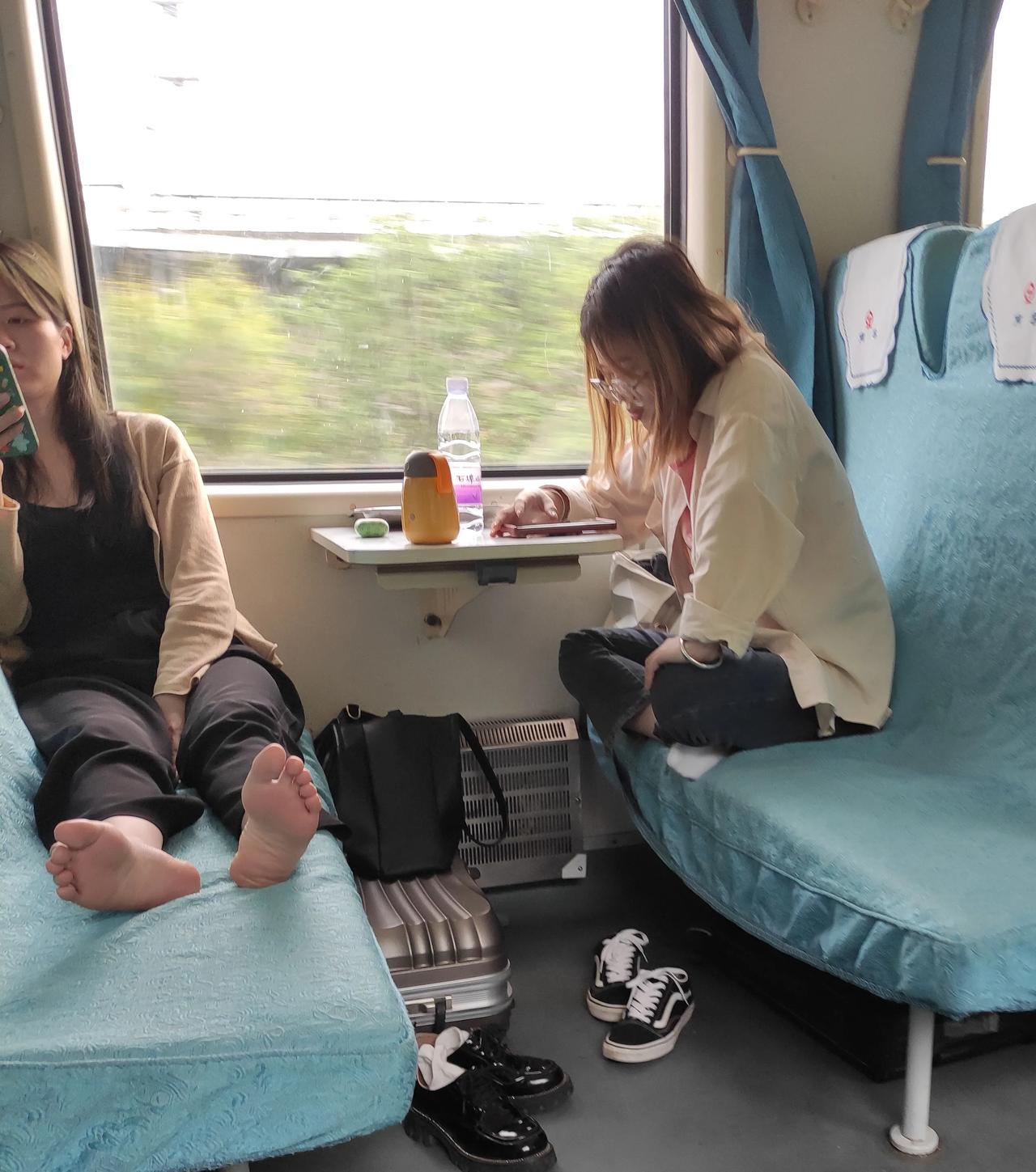 是我我就坐她旁边,她要是无动于衷,我就帮她穿袜子,穿两个小时,不,穿到下车[呲牙笑]