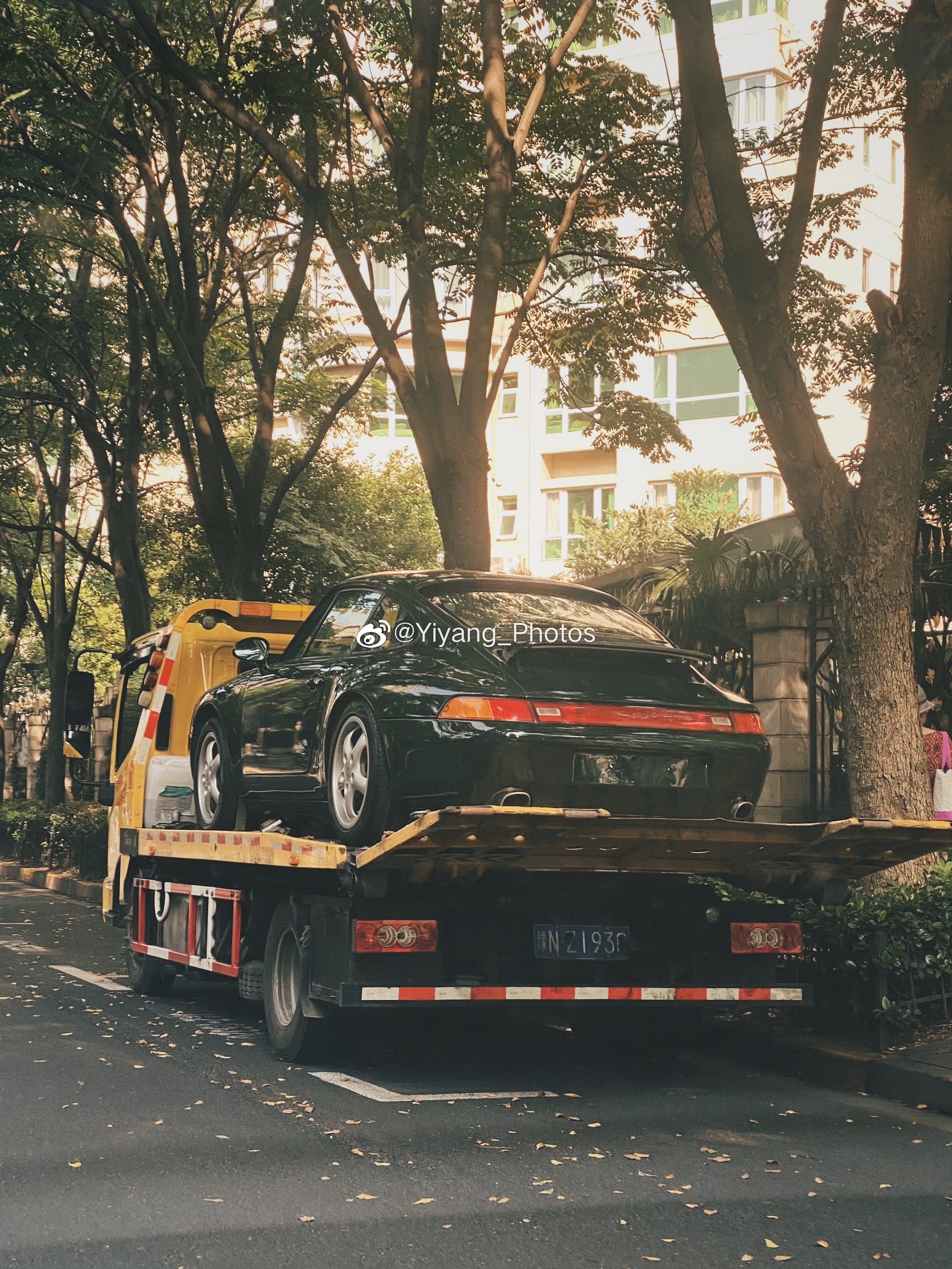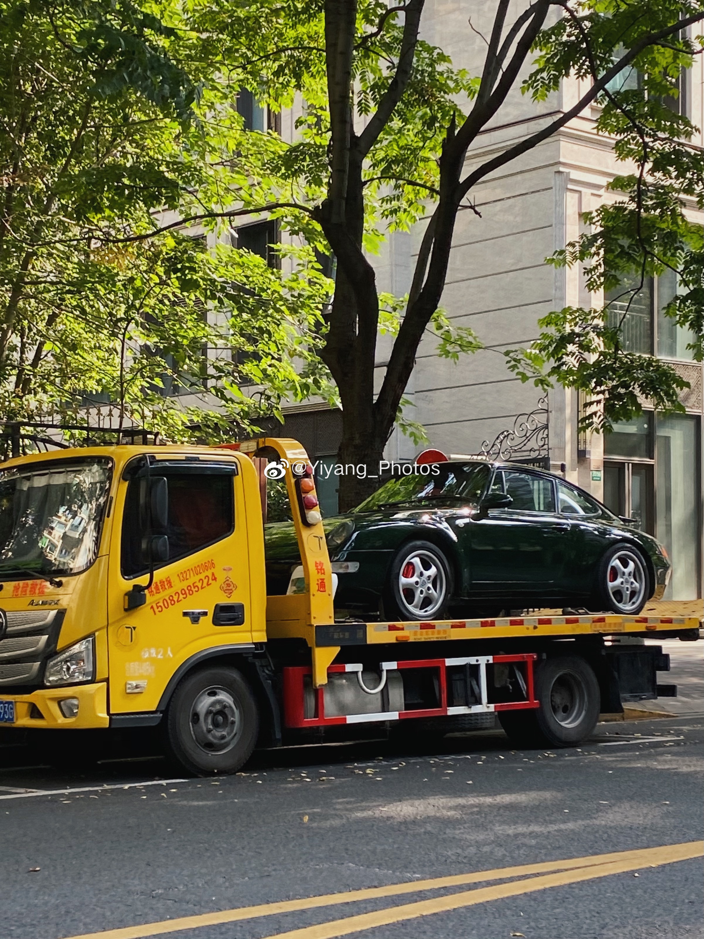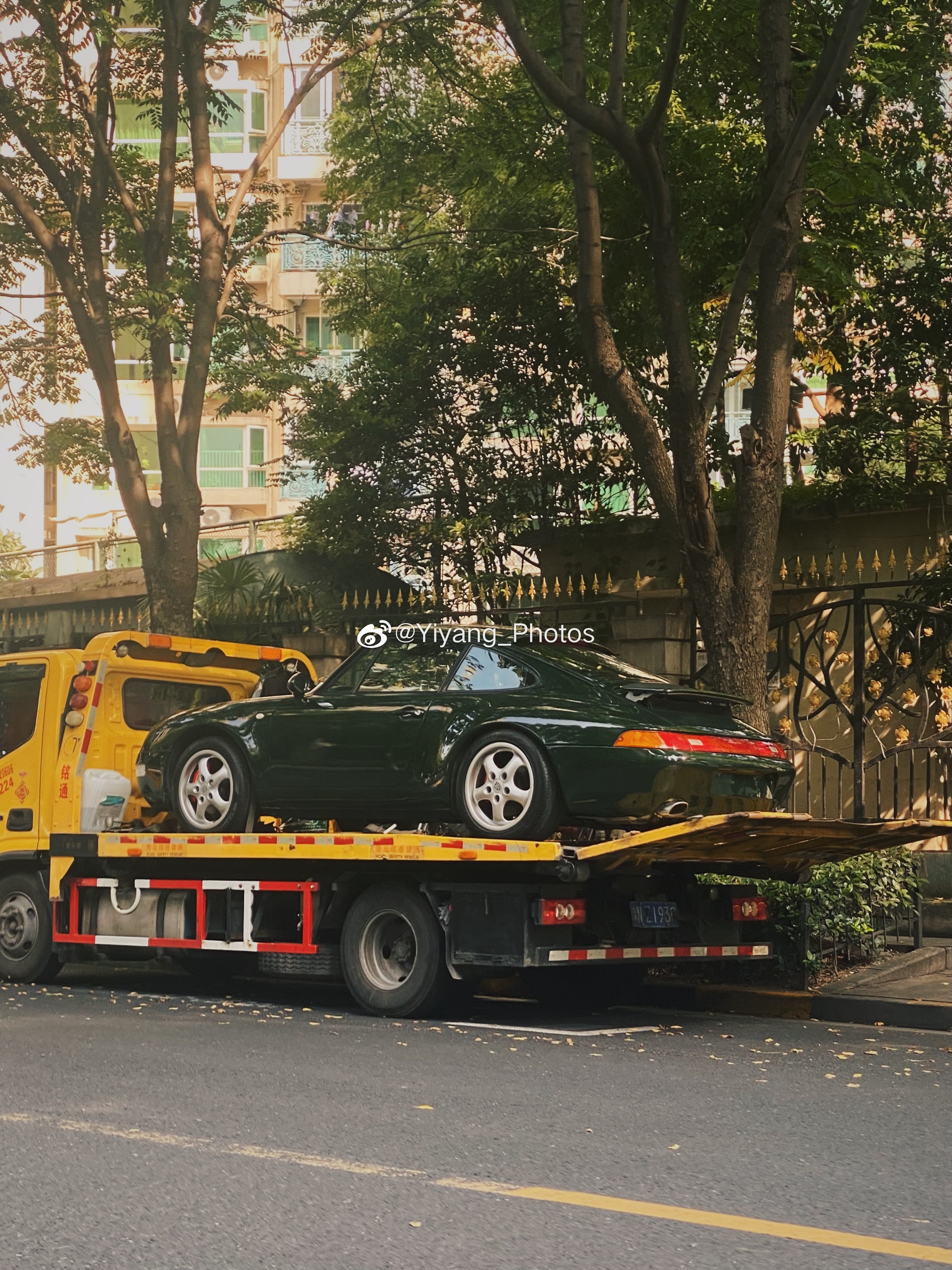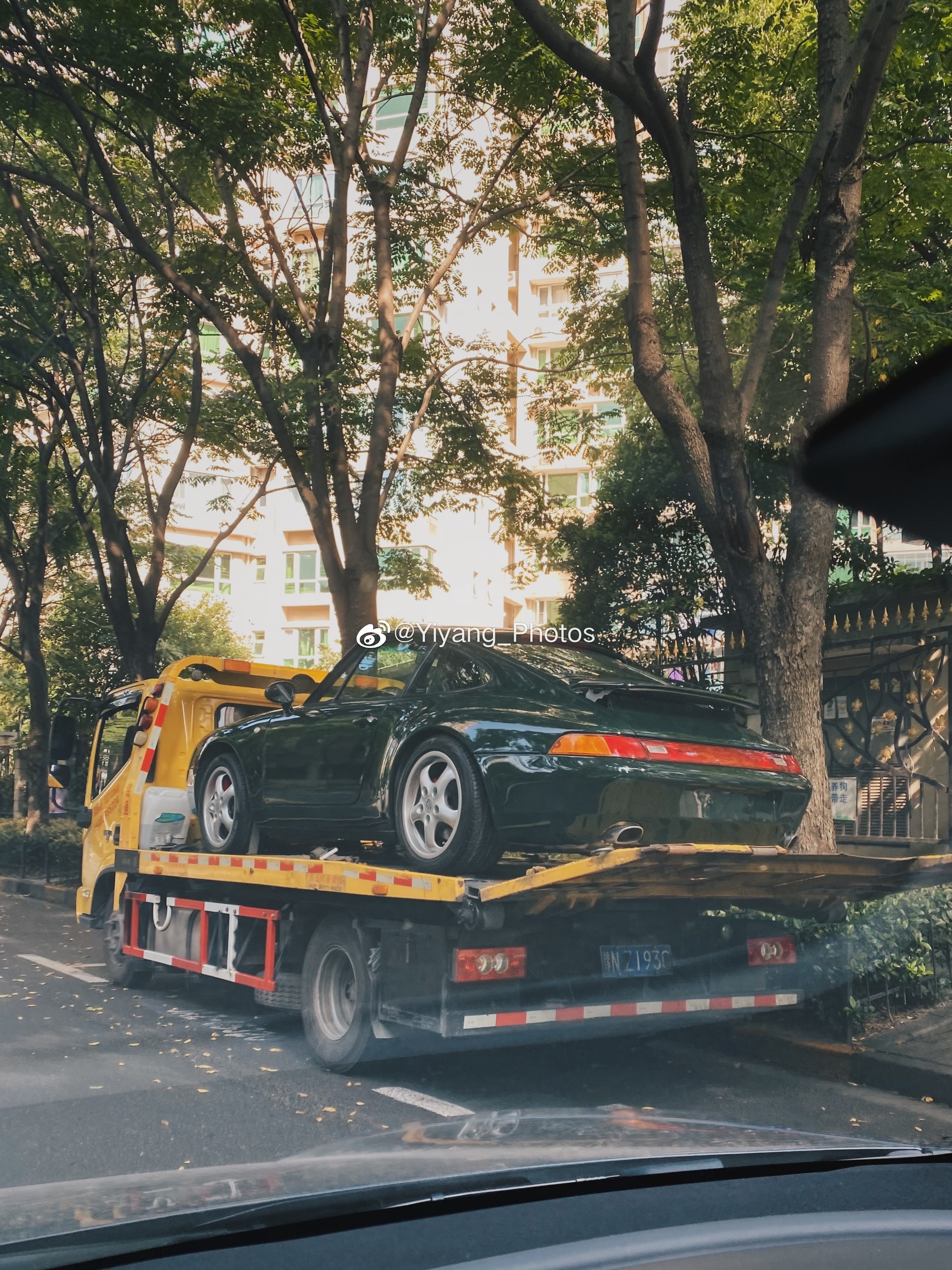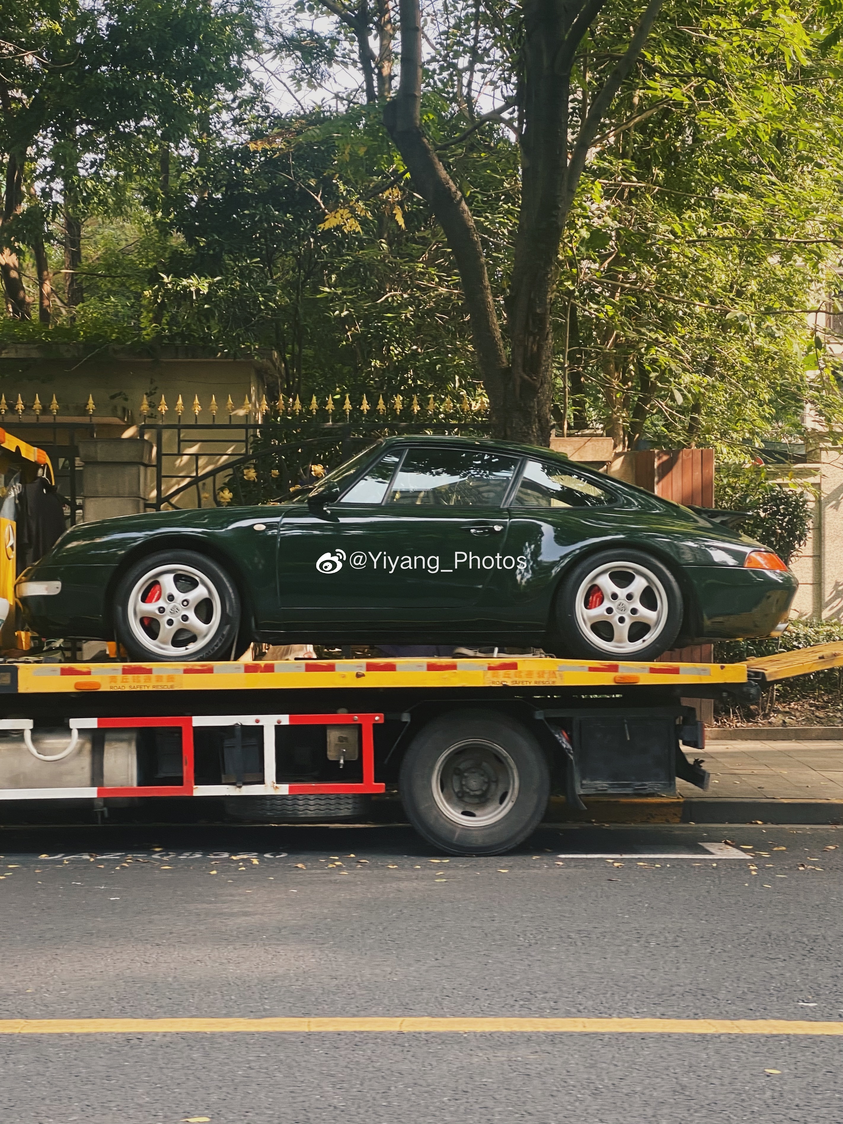 又到了最近遇到的一些车系列时间, 今天一早偶遇路边板车上的993, 墨绿色还挺符合这车的气质的