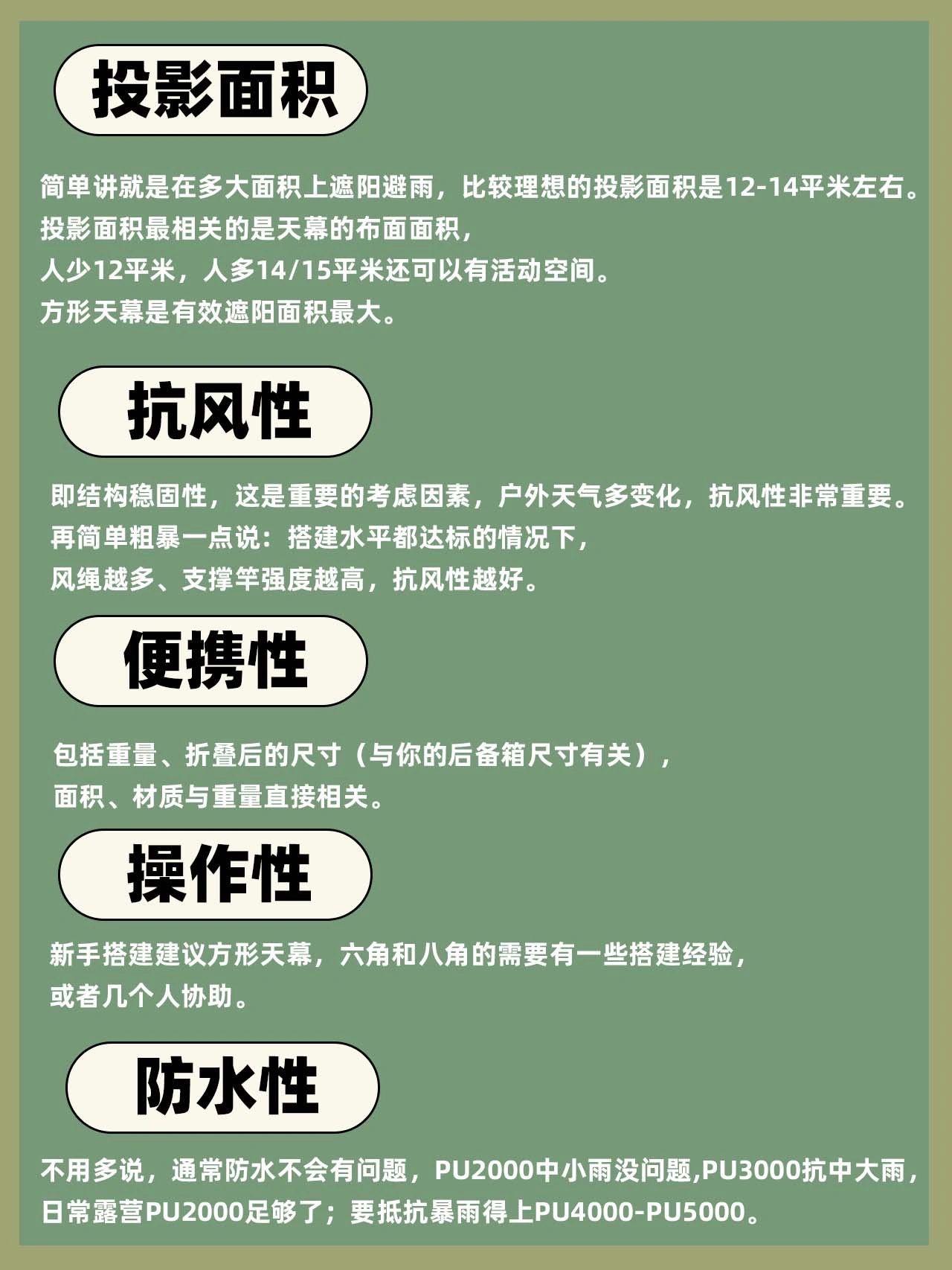 黑胶不易老化,其比较耐用,相对来说价格也会高一点。当然还有一些天幕的小tips,都放在后面几张图上了,大家可以参考参考。