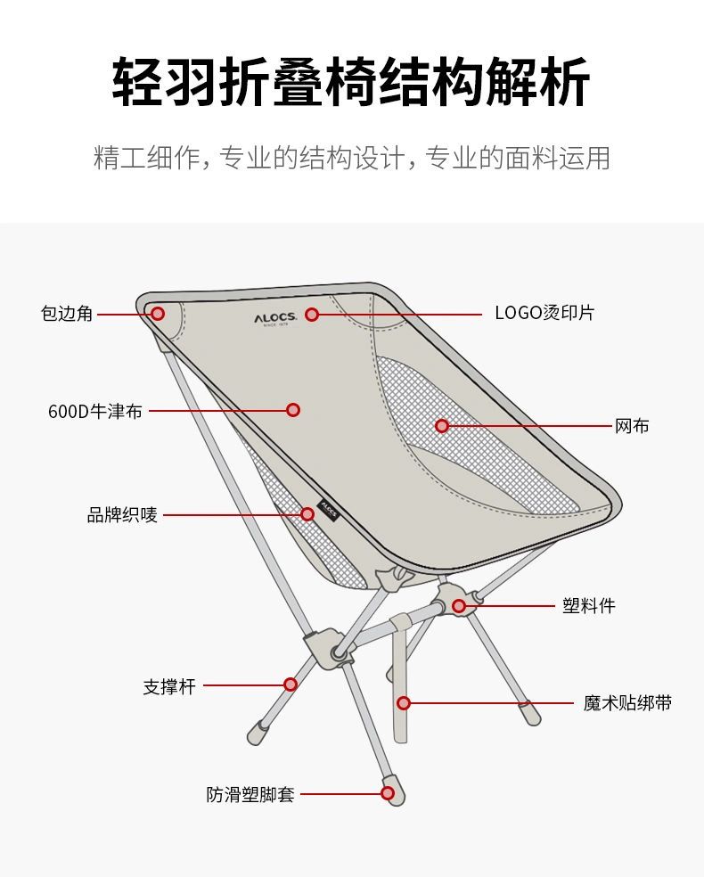 PS:本人64kg。防滑脚垫:建议可以换成青蛙脚的,适应各种地形,这个脚垫接触地面面积小,在沙地有可能会下陷,之前买的另一把是青蛙脚的,就很稳。总的来说,轻便,承重强,收纳小,做工精细,颜值高,值得入手。但是可以的话,高背的月亮椅会更舒服哦。