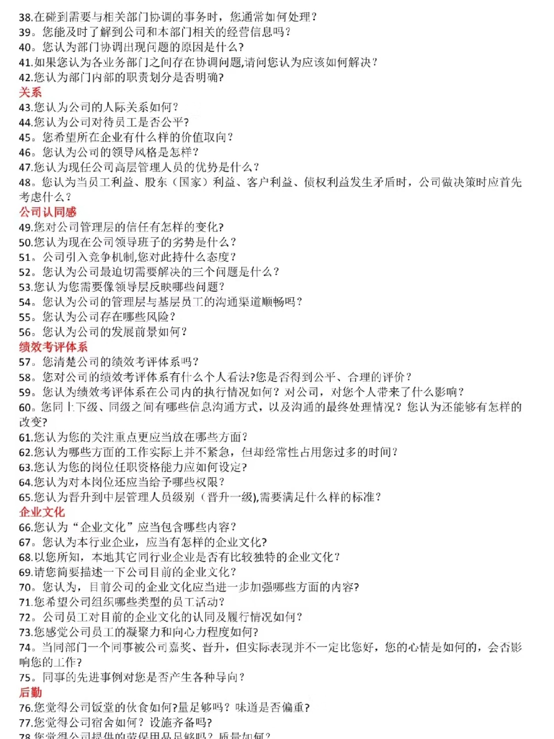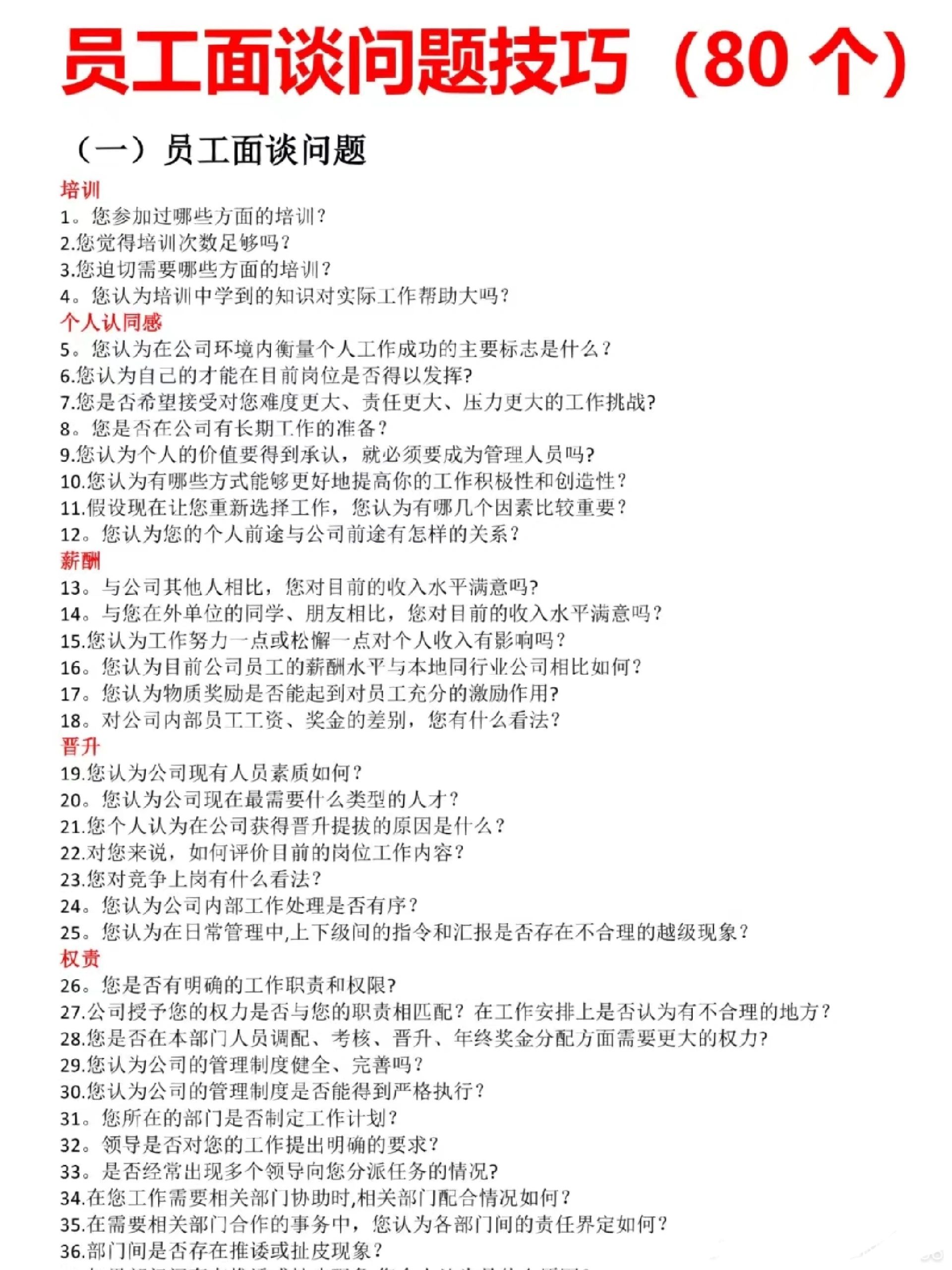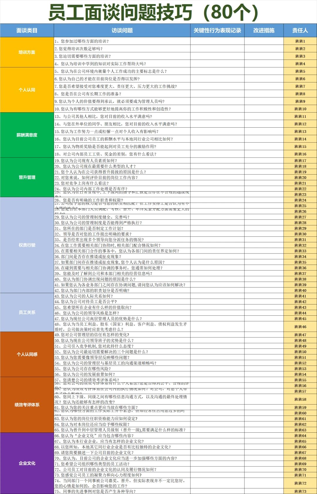 2023行政板块 员工面谈是一种管理工具,用于与员工进行沟通和反馈,以提高员工的工作表现和职业发展。以下是一些建议,帮助您进行有效的员工面谈: 1. 预先准备:在面谈之前,准备一个明确的议程,列出您希望讨论的重点和问题。根据员工的表现和需要,确定面谈的目标,并准备好支持材料,如报告或数据。 2. 创建良好的氛围:在面谈开始时,确保您和员工都感到放松和舒适。选择一个私密的地方,远离干扰,确保面谈的时间充足。通过友好和开放的姿态,鼓励员工分享观点和问题。 3. 倾听和提问:在面谈过程中,重要的是倾听员工的观点和反馈。给予员工充分的时间表达自己的意见,并用积极的言辞鼓励他们参与讨论。提问是了解员工需求和期望的重要方式,确保你提出开放性和启发性的问题。 4. 给予正面反馈:员工面谈是给予正面反馈的好机会。在面谈中,认可员工的成就和努力,并表达赞赏之情。通过给予具体的和有意义的反馈,帮助员工了解自己的优势和改进领域。 5. 目标设定和发展计划:面谈是设定目标和制定发展计划的良好机会。与员工一起制定明确的工作目标,并提供支持和资源,以帮助他们实现这些目标。讨论员工的职业发展目标,并提供培训和发展机会,以支持他们的职业成长。 6. 跟进和回顾:在面谈后,及时跟进承诺和行动计划。定期回顾员工的进展,并提供持续的反馈和支持。确保员工了解他们的工作表现如何,并鼓励他们继续努力。 记住,面谈是一种双向的交流机制,目的是建立信任和促进员工和组织的共同发展。确保面谈过程公平、透明,并尊重员工的意见和反馈。