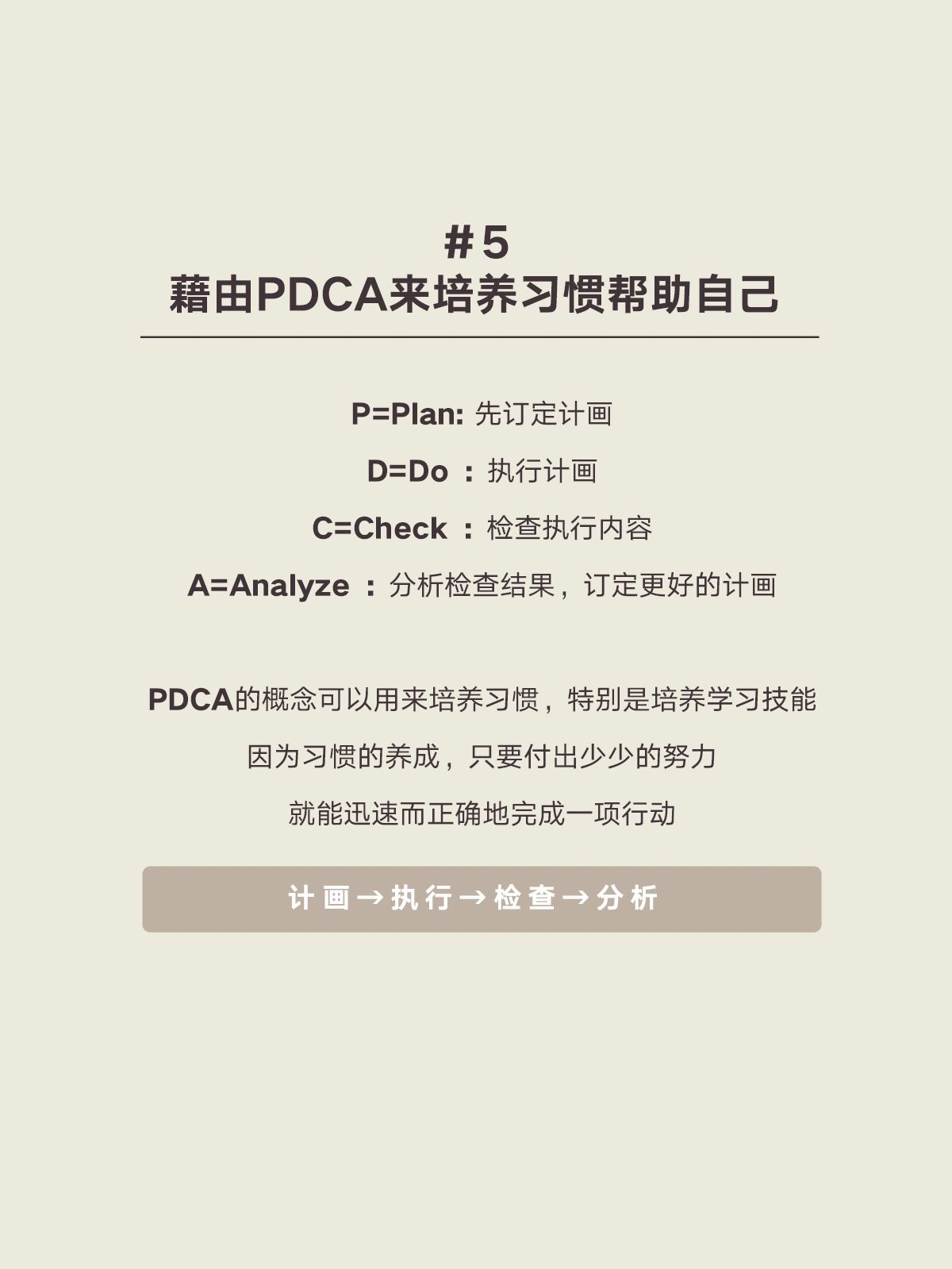 PDCA的概念可以用来培养习惯,特别是培养学习技能