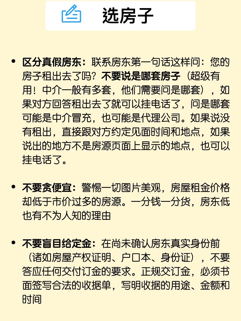 区分真假房东:第一句「不要说是是那套房子」(敲黑板!!超级管用)因为一般中介会问你想要哪一套。