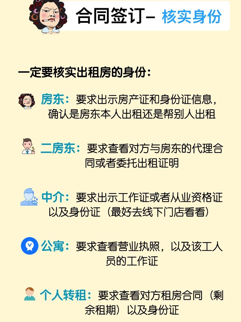 一定要核实出租方的身份(房东/二房东/中介/公寓/个人转租)