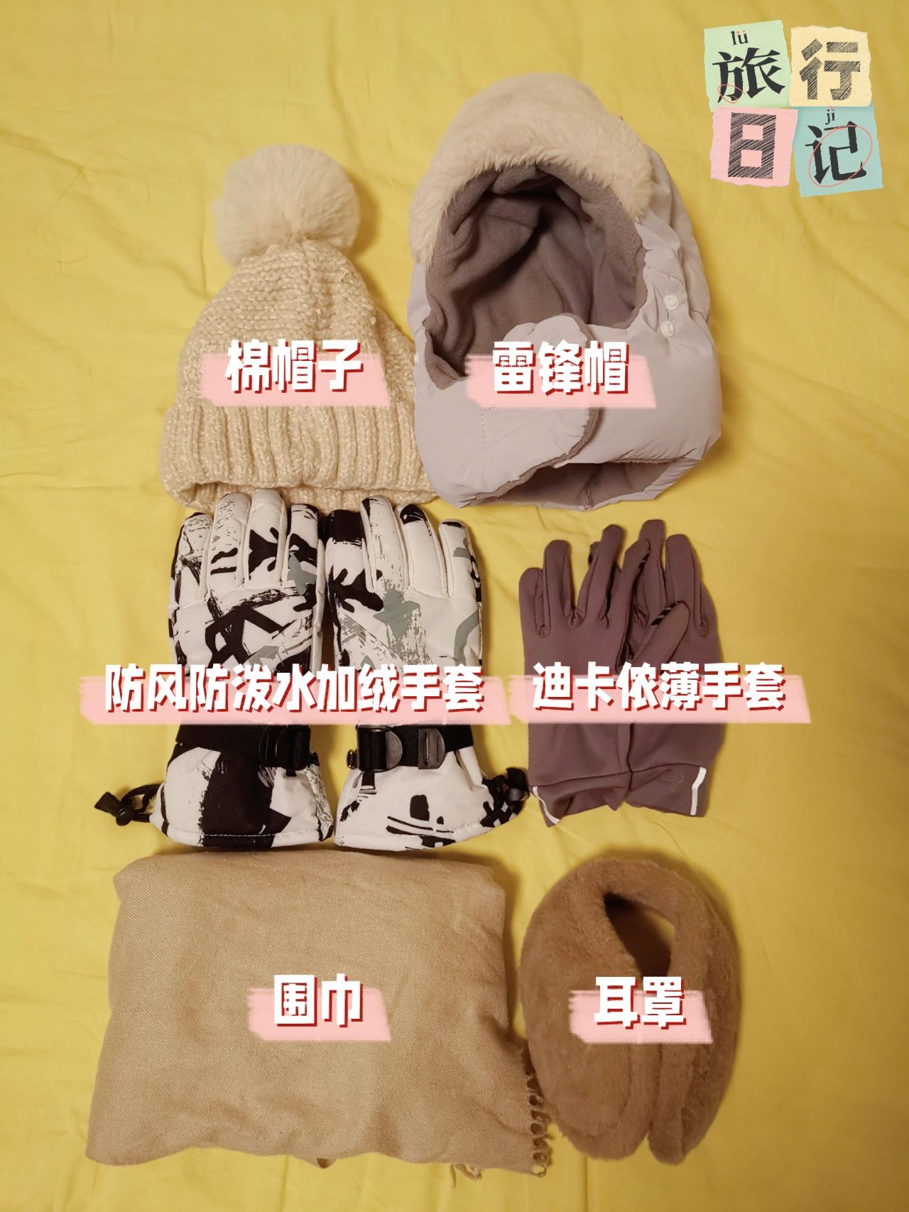 南方人去零下30℃漠河东北冬天穿搭装备 超全超详细整理,希望能帮到大家,避免踩雷~ 地道的南方人,第一次去东北冬天,就去了最北的地方-漠河。旅途玩得很开心,后面有时间再总结。这里先给大家分享漠河冬天穿搭和准备的提醒~ 穿搭装备 大原则:防风+保暖+打底,尽量方便穿脱,不要穿的太紧,留有活动的空间。身上穿好是不容易冷的,主要是做好手脚保暖工作 上半身: 厚羽绒服+毛衣+打底衫。如果怕冷要叠加毛衣,其中一件毛衣需要大点。打底衫正常即可,不需要加绒 如果有马甲羽绒,建议带上。穿的时候手臂部分的活动比较灵活,防风保暖,且方便穿脱收纳 选择1:厚羽绒服+羽绒马甲+厚毛衣+打底衫 选择2:厚羽绒服+厚毛衣+薄毛衣(可选)+打底衫 下半身 防风加保暖,防风选冲锋裤或羽绒服裤,冲锋裤不需要加绒,普通即可,主要是防风和防泼水(滚雪需要,不然会湿),尺码需要大点。保暖选厚的打底裤,我买的加厚羊羔绒,可以外穿 选择:防风防泼水冲锋裤+加绒打底裤+薄打底(可选,特别怕冷穿3条,注意每一层尺码需要加大) 手脚头装备 手:准备两副可触屏手套 一副厚的防风防泼水保暖手套,滑雪或呆外面时间长可以用 一副薄的微加绒手套,方便穿脱和活动。厚手套一般不太合手指尺寸,薄的比较灵活。如果只玩一小会,可以穿薄的,玩完迅速把手放进口袋,也不会觉得冷 脚:袜子准备两种厚度,厚的羊毛袜子,和正常厚度(机场/火车可以换)。鞋子选防泼水防滑的雪地靴 头:需要保护头顶/耳朵/脸/脖子,各个部位都可以单独买装备,也可以一顶雷锋帽YYDS,裹得严严实实。头选厚帽子,淘宝可以搜拍照比较好看的造型。耳罩不一定买,看帽子是否能把耳朵遮住。脸可以用围巾或口罩遮住,露在外面的皮肤越少越不觉得冷 其他装备 除了旅途必备物品(洗漱用品/充电宝等),以下是强烈推荐的! 1.暖宝宝/暖足贴:超级有用!在膝盖/脚/身上贴,超级舒服!飞机可以托运 2.一次性拖鞋:火车飞机能换 3.一次性口罩:多备几个,出去哈气口罩会湿 4.自拍杆:有的景点想快速拍照,直接按自拍杆,就不用摘手套,减少手在外面的时间,还可以当稳定器,在车上可以手持拍前面的公路风景,也很不错 5.墨镜:防止雪盲症。另外建议带隐形眼镜,有框镜片会起雾看不清,或提前买点除雾剂