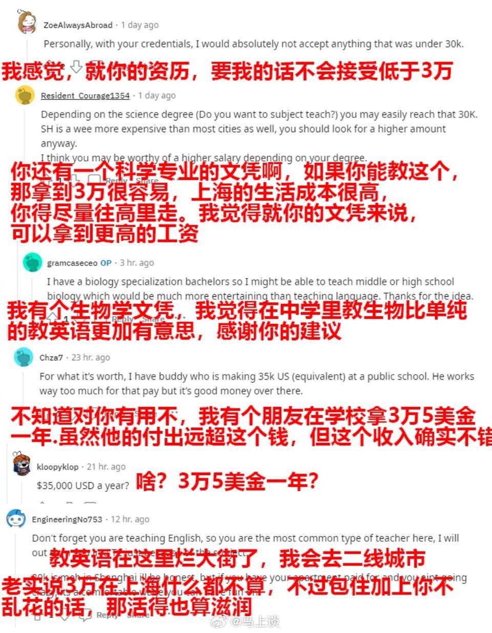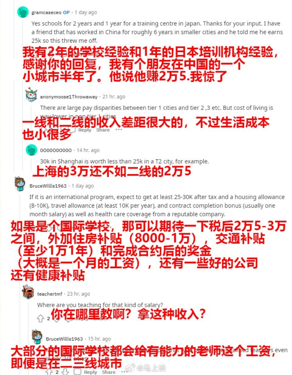 外网老外讨论在中国教英语月薪多少,没想到还挺高![微笑]