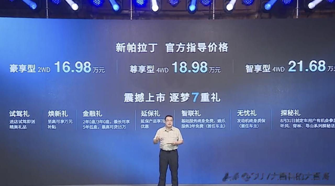 8月13日,郑州日产新款帕拉丁上市,售价16.98-21.68万元,是一款带大梁的工具型越野车。明眼人一看便知,这款车外观与日产途达有着很深的血缘关系,但亮点是从2.5自吸发动机+6MT/7AT变速箱升级为2.0T发动机+8AT变速箱。 不过耐人寻味的是,该车由郑州日产(东风体系内的企业)生产,却并未悬挂日产Logo,而是启用了一款全新车标,且对于新帕拉丁究竟归属日产序列还是东风序列这个问题,厂方宣传话术中却始终含糊其辞。 20年前,老款日产帕拉丁借助参与达喀尔拉力赛一炮而红,但影响力早已消耗殆尽,而作为一款皮实的工具型越野车,新款帕拉丁还有戏吗?