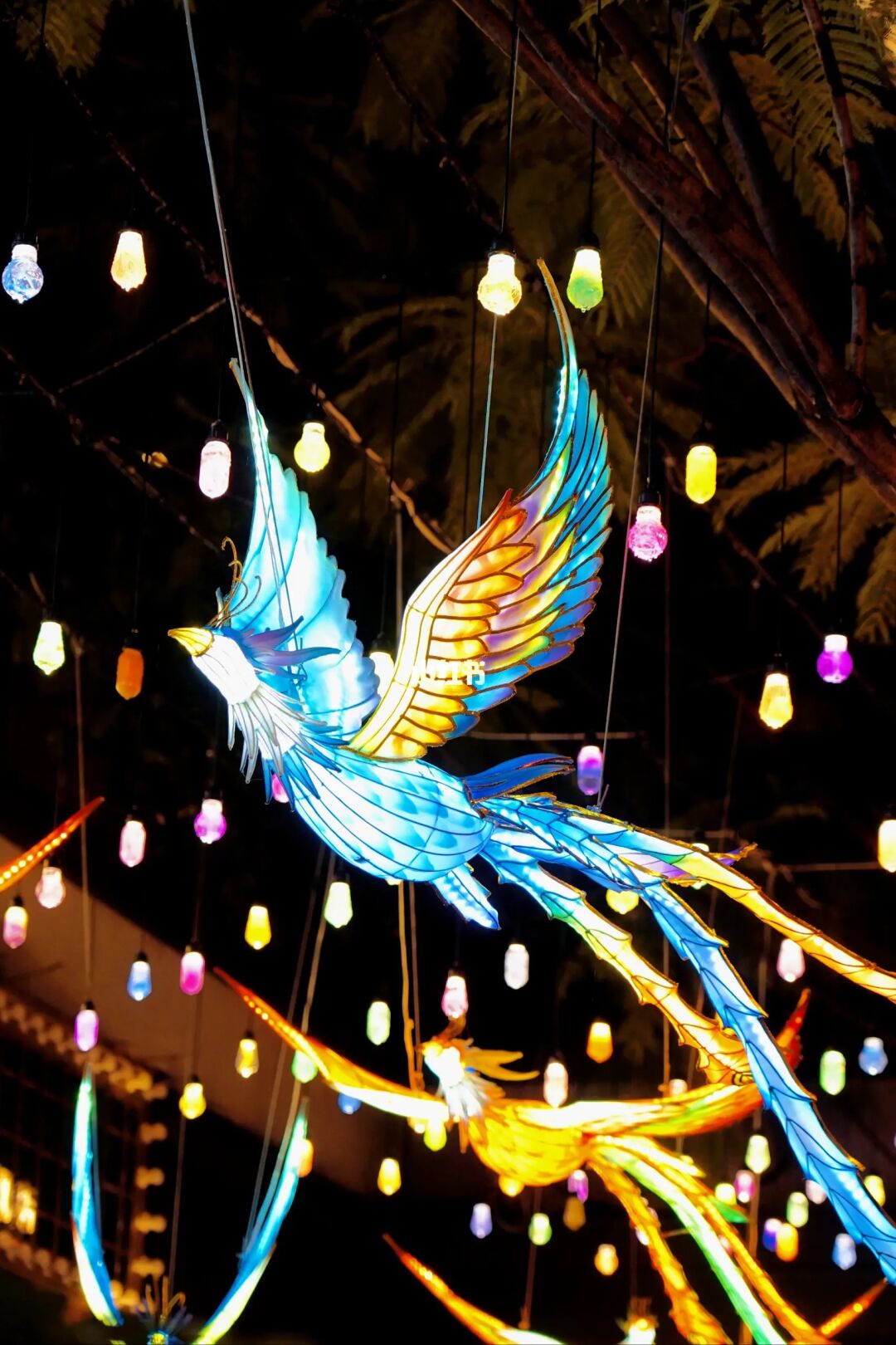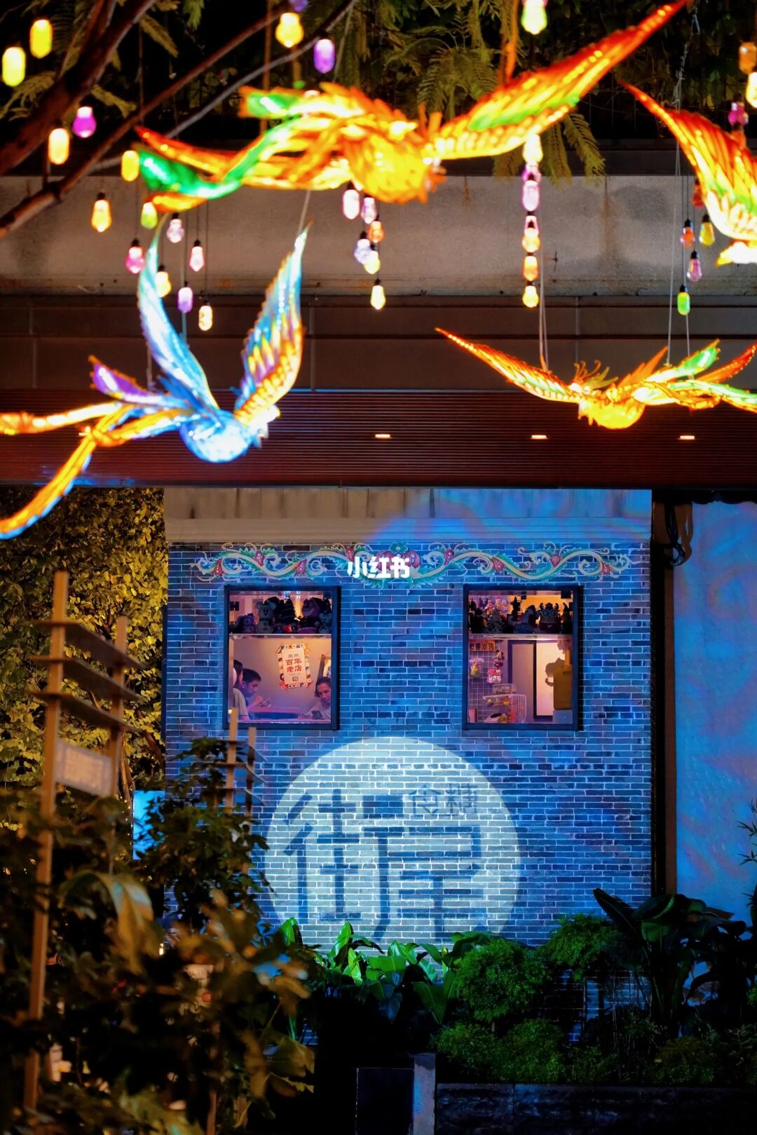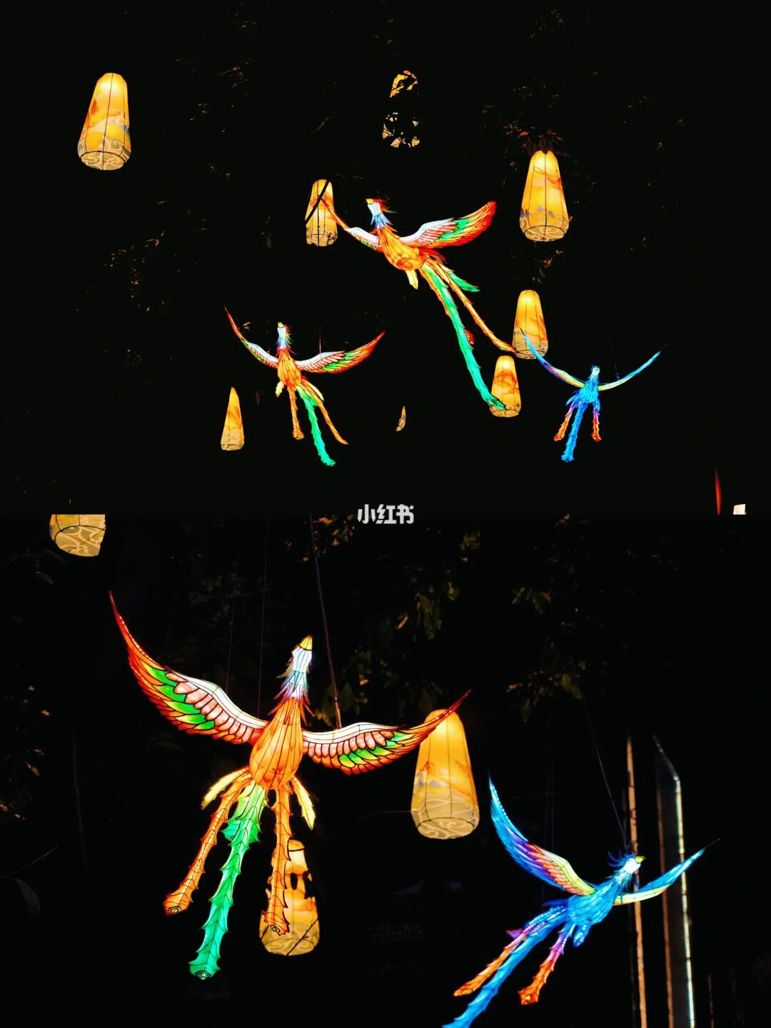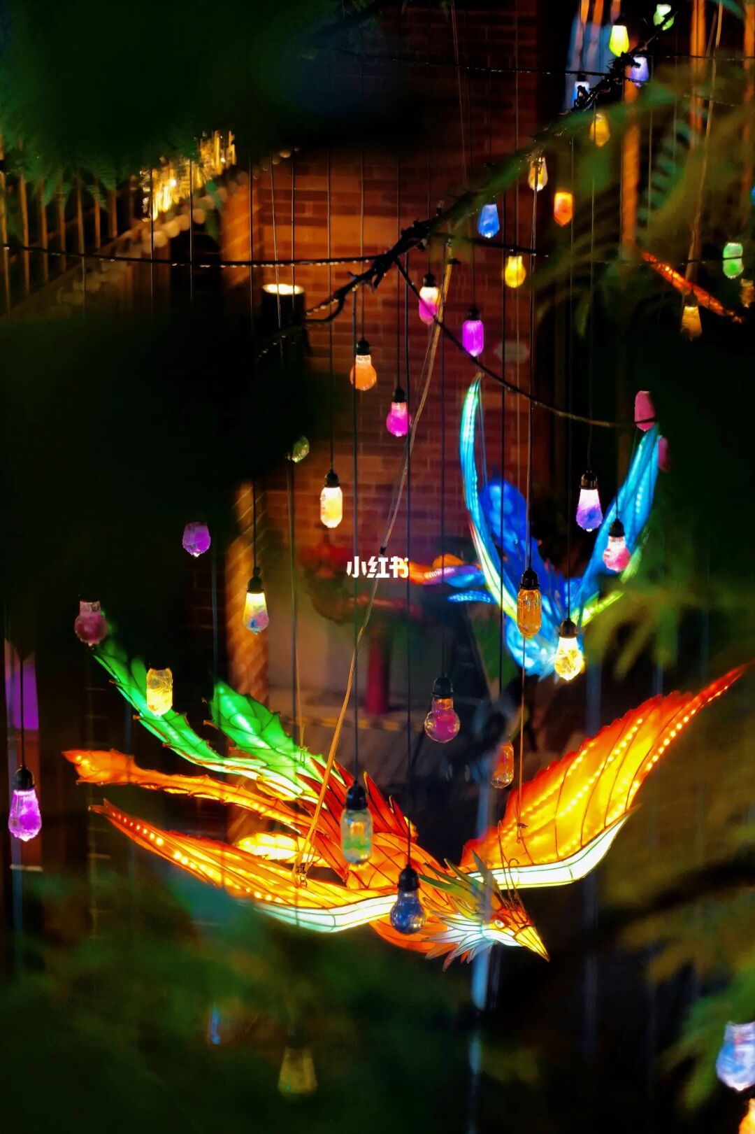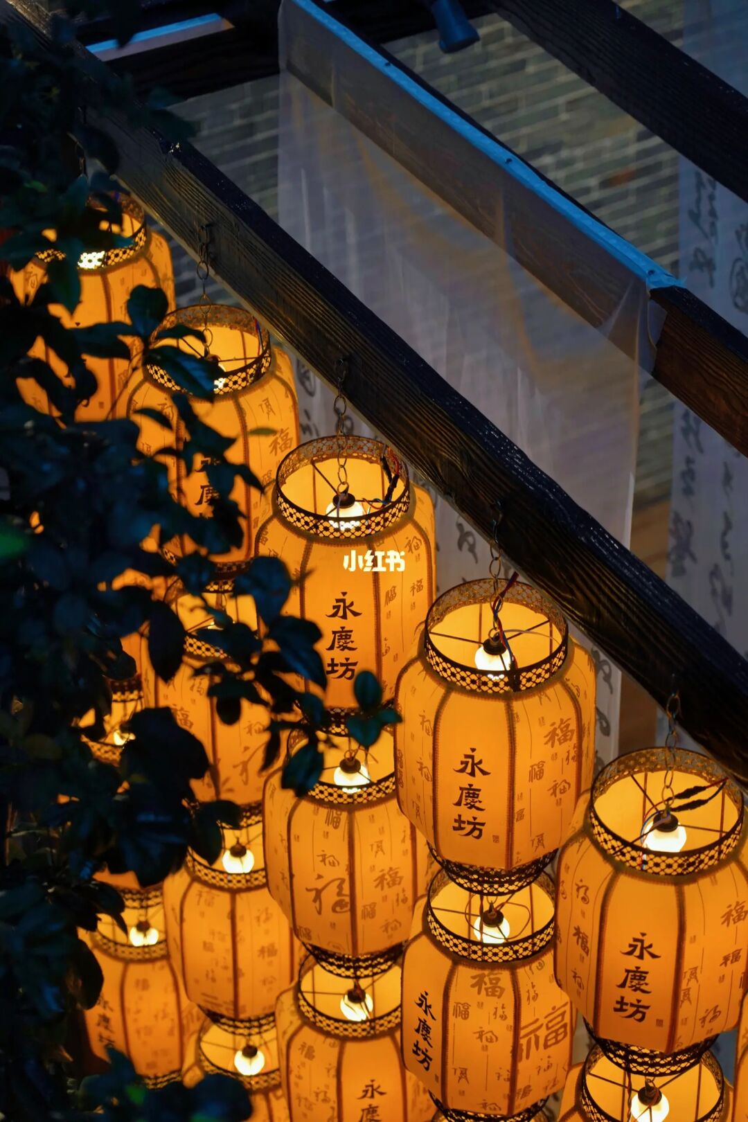 永庆坊大街小巷都布置了花灯,今年有所不同的是,一期巷子里挂着的传统灯笼;二期太哼冰室、钟书阁门口的大树下挂着的是凤凰灯