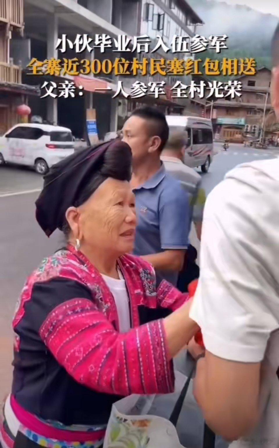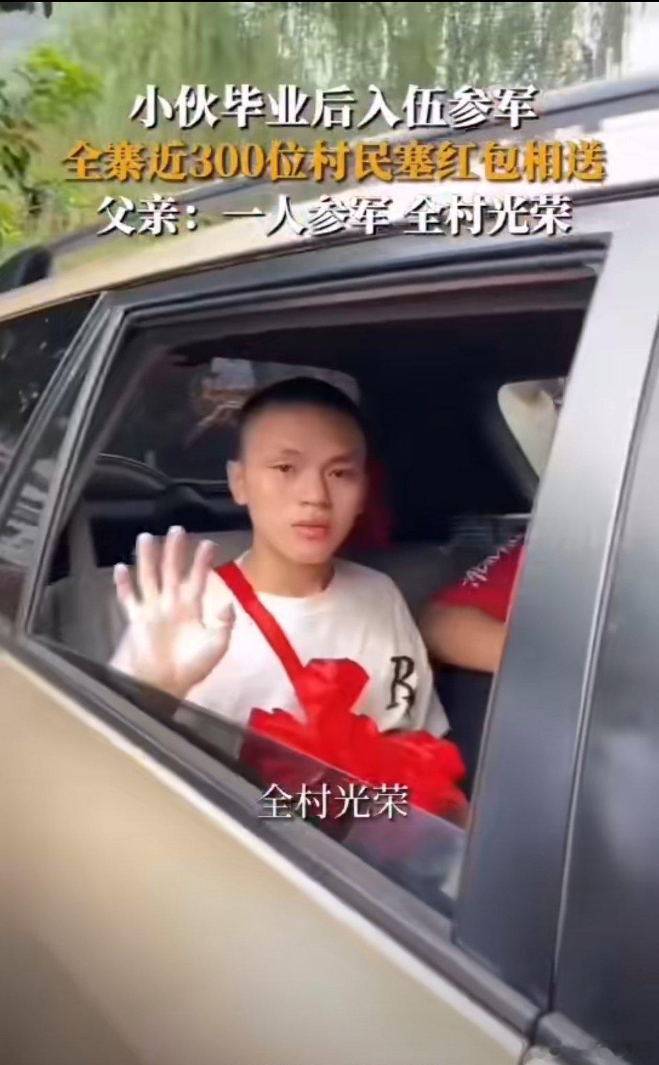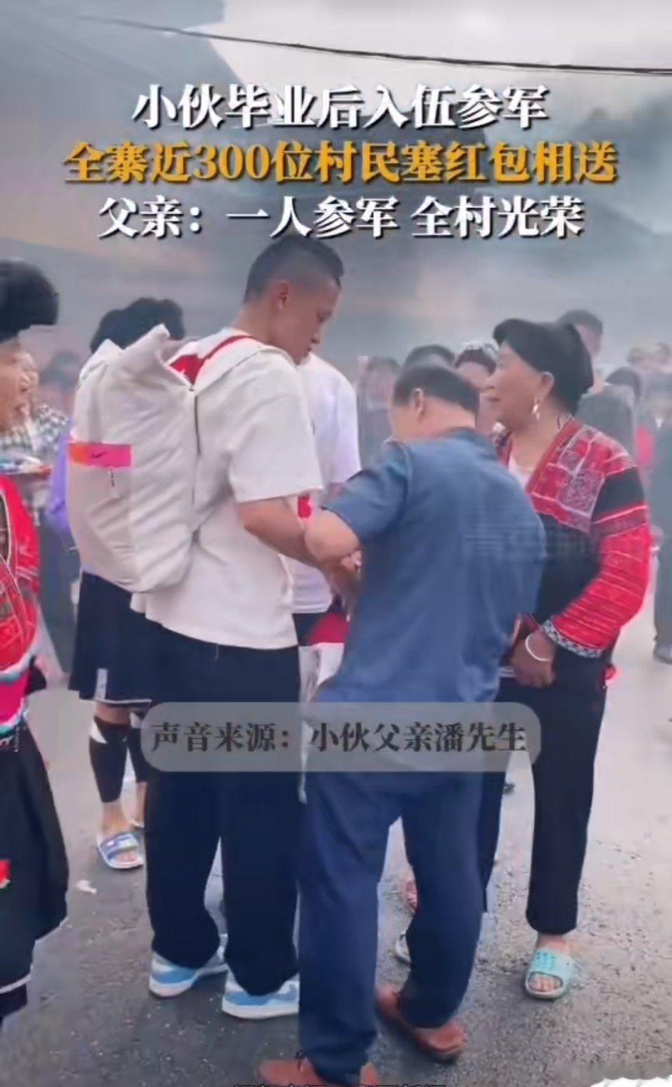 #小伙参军入伍近300位村民塞红包欢送#父亲:一人参军,全村光荣!