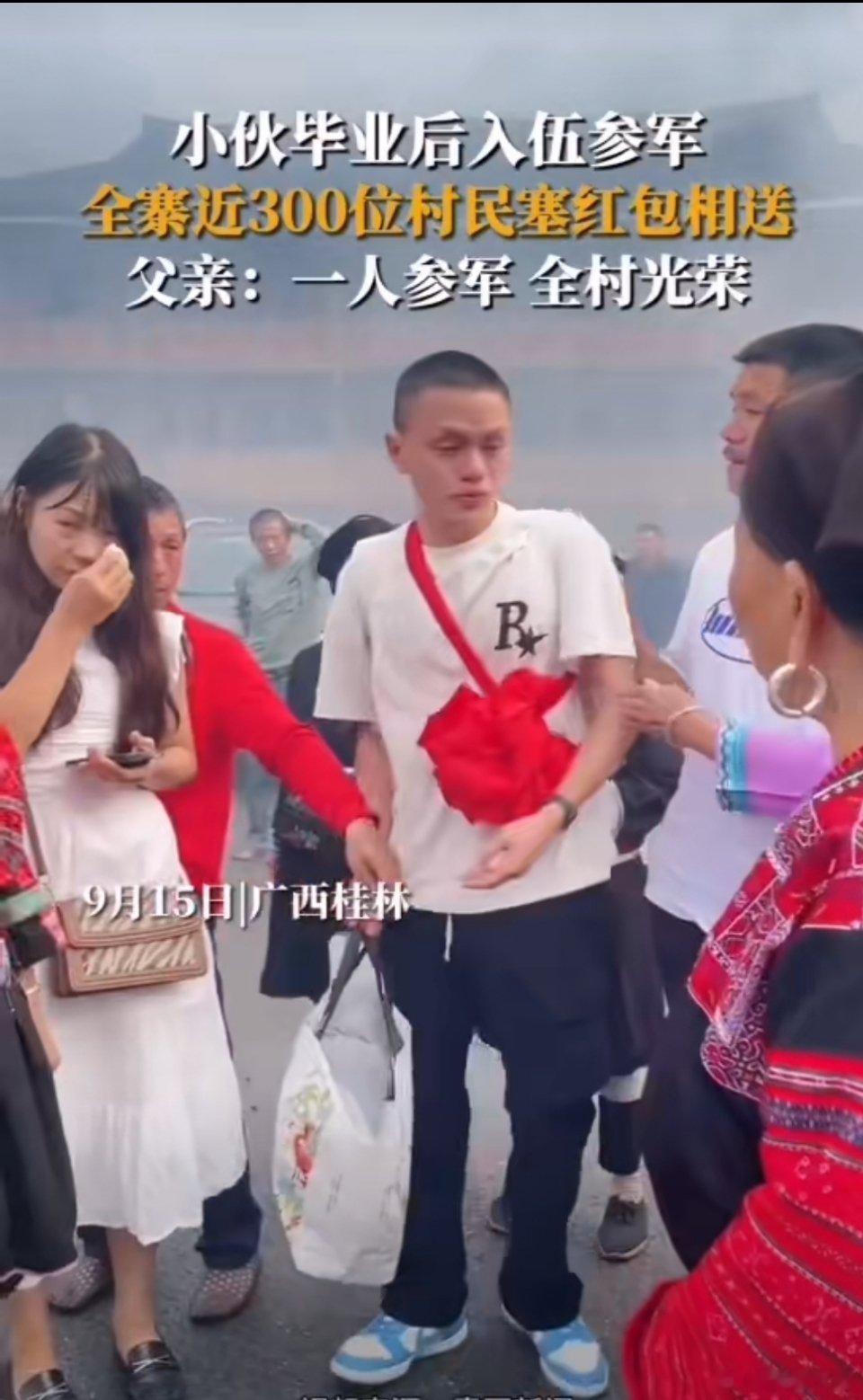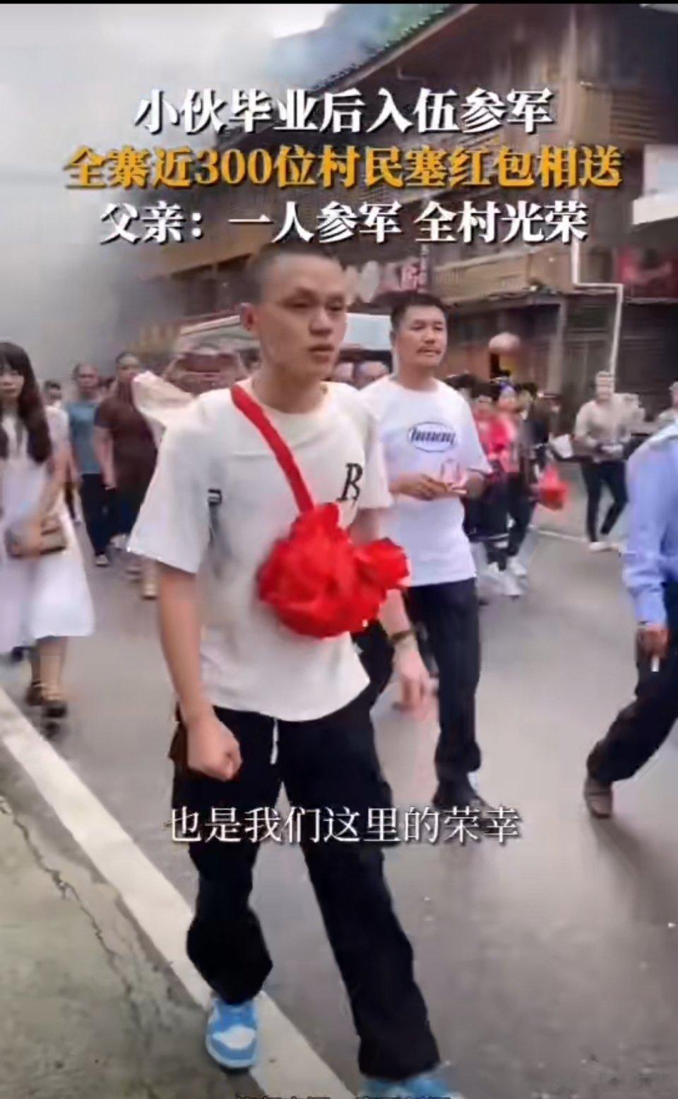 #小伙参军入伍近300位村民塞红包欢送#