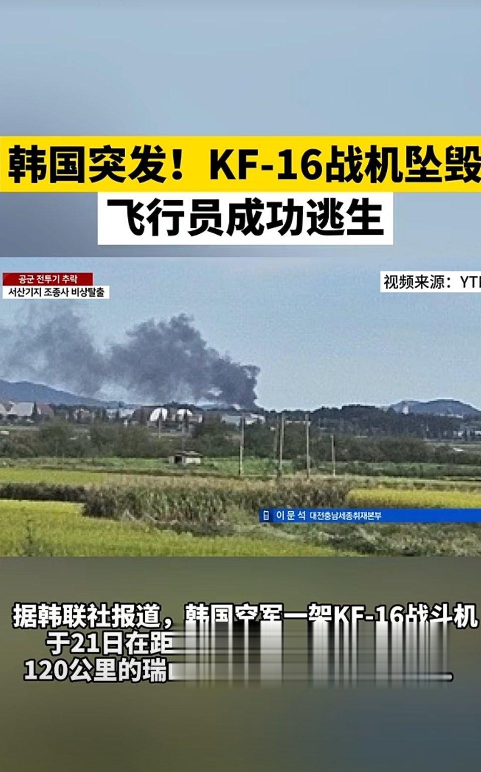 韩联社称,这架战斗机属于韩国空军第20战斗机联队。飞行员成功逃生!