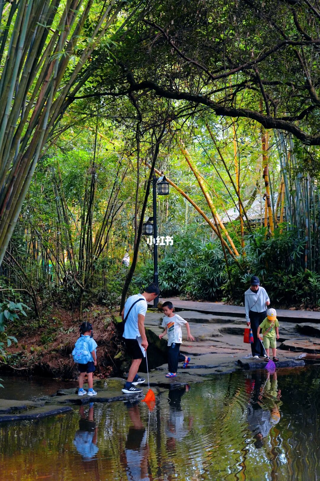溪边的竹林曲径通幽,周末带上小朋友来这儿网鱼玩水很是不错哦