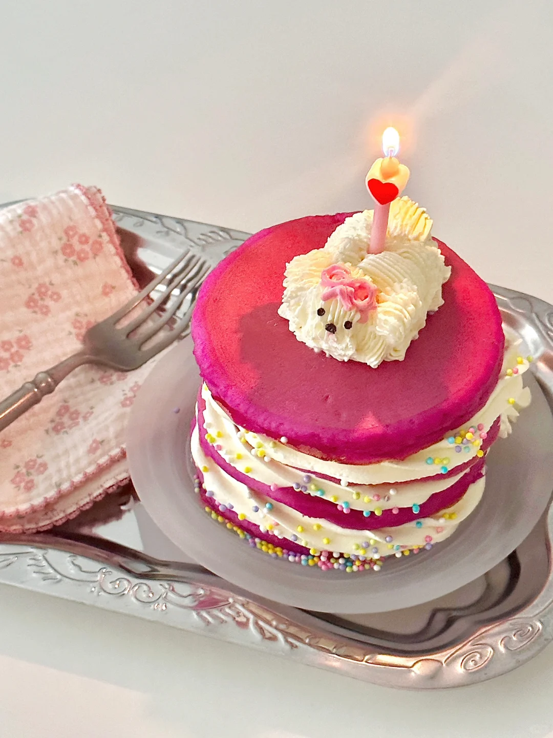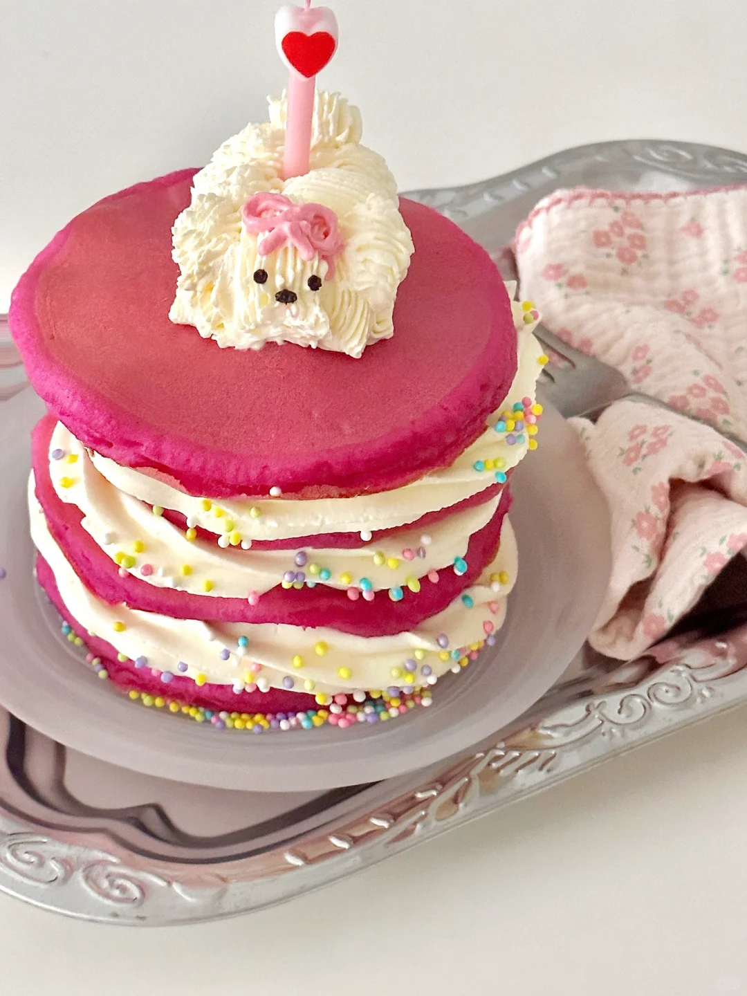 桃粉色小狗奶油松饼蛋糕 | 附教程
