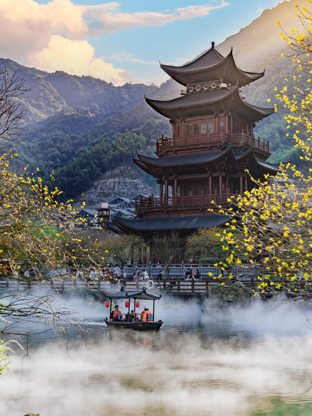 是藏在山里的神仙古镇,雨后整个山间云雾缭绕。坐索道去山顶去葛仙山,听说那里姻缘很灵