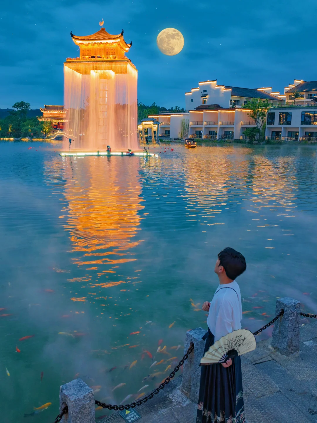 如果说古镇都大同小异,那婺女洲的夜景是封神的存在,华灯初上,“醉后不知天在水,满船清梦压星河”“”天花无数月中开,五色祥云绕绛台”都是把古诗照进现实。