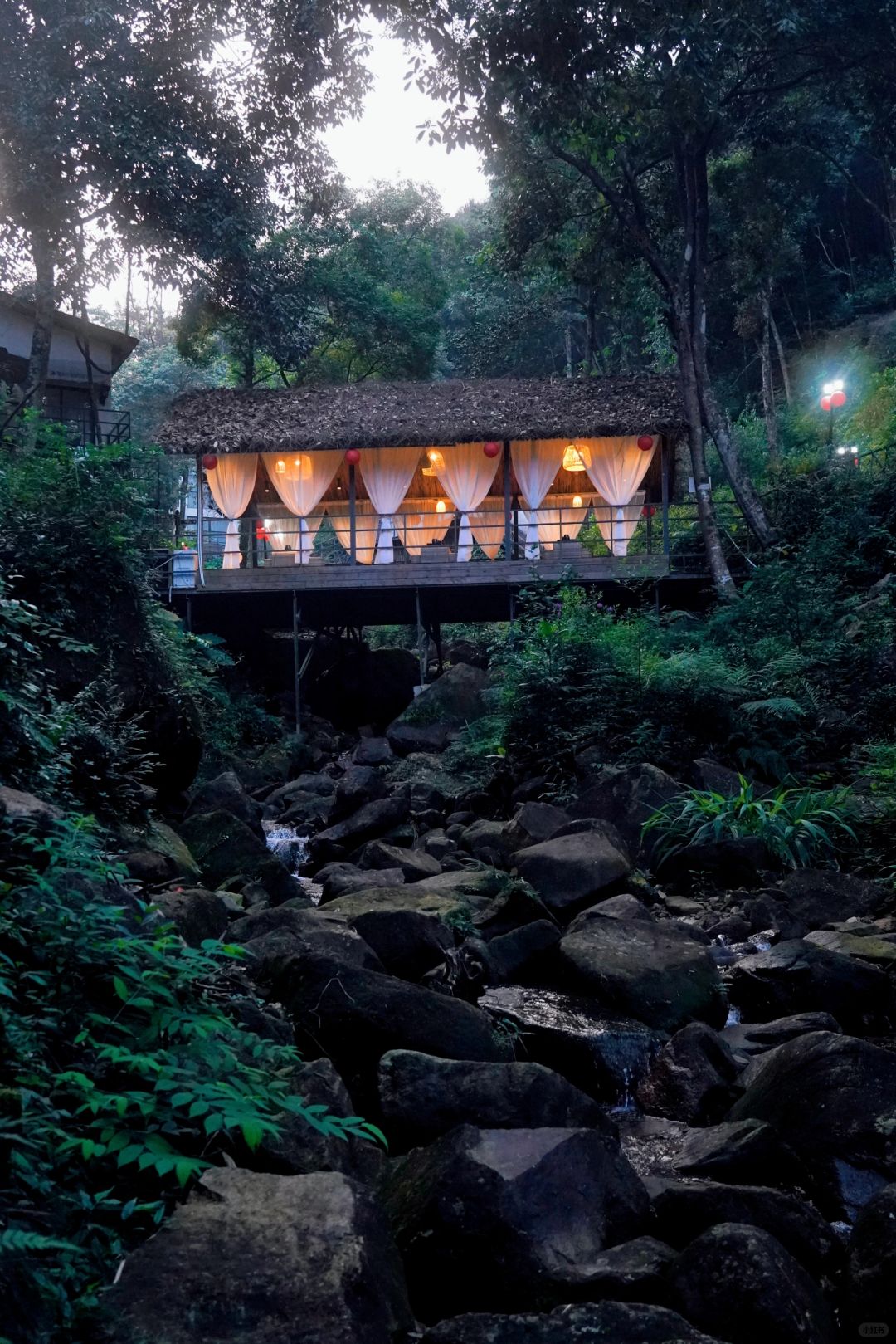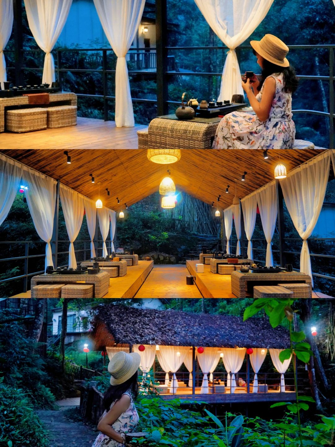 🔹 一直走到山顶,有一间建在流水之上的空中茶室,听着潺潺的流水声,泡上一壶茶,很是惬意