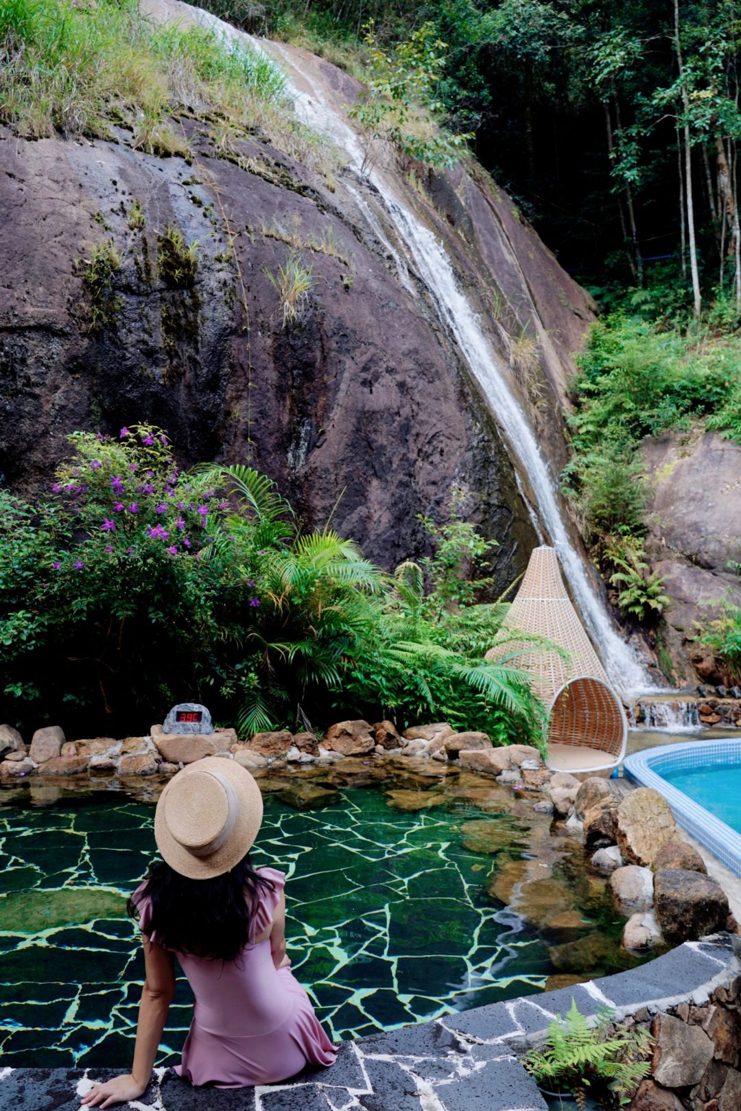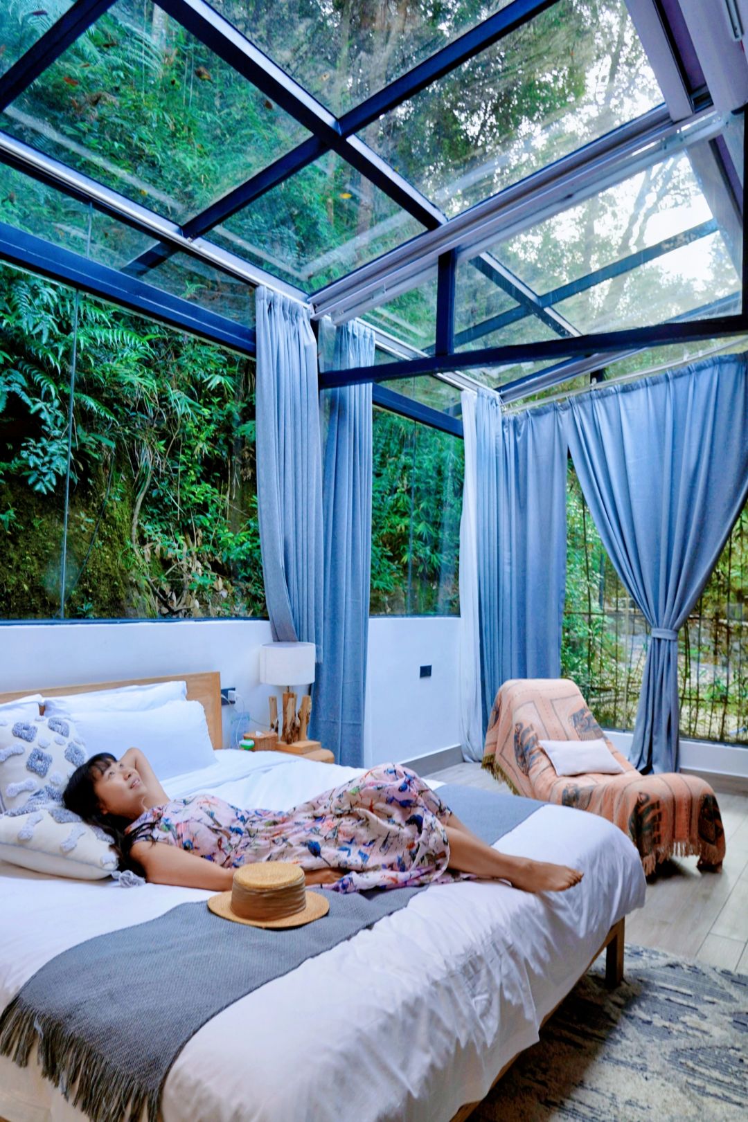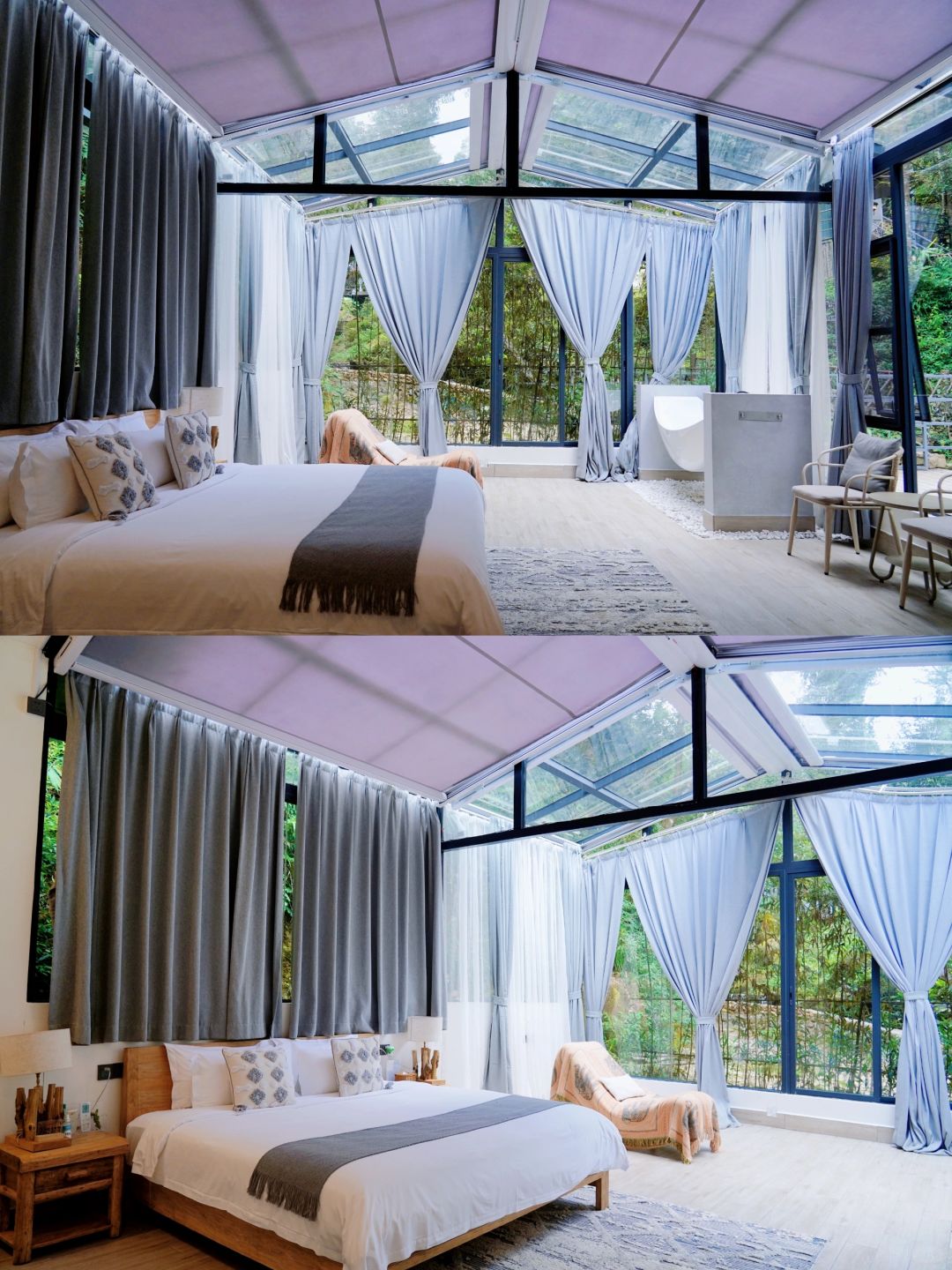🔹 如果溯溪还不够清凉,那就直接跳入瀑布下的玻璃泳池吧!泳池里的透明船拍照更是好好看