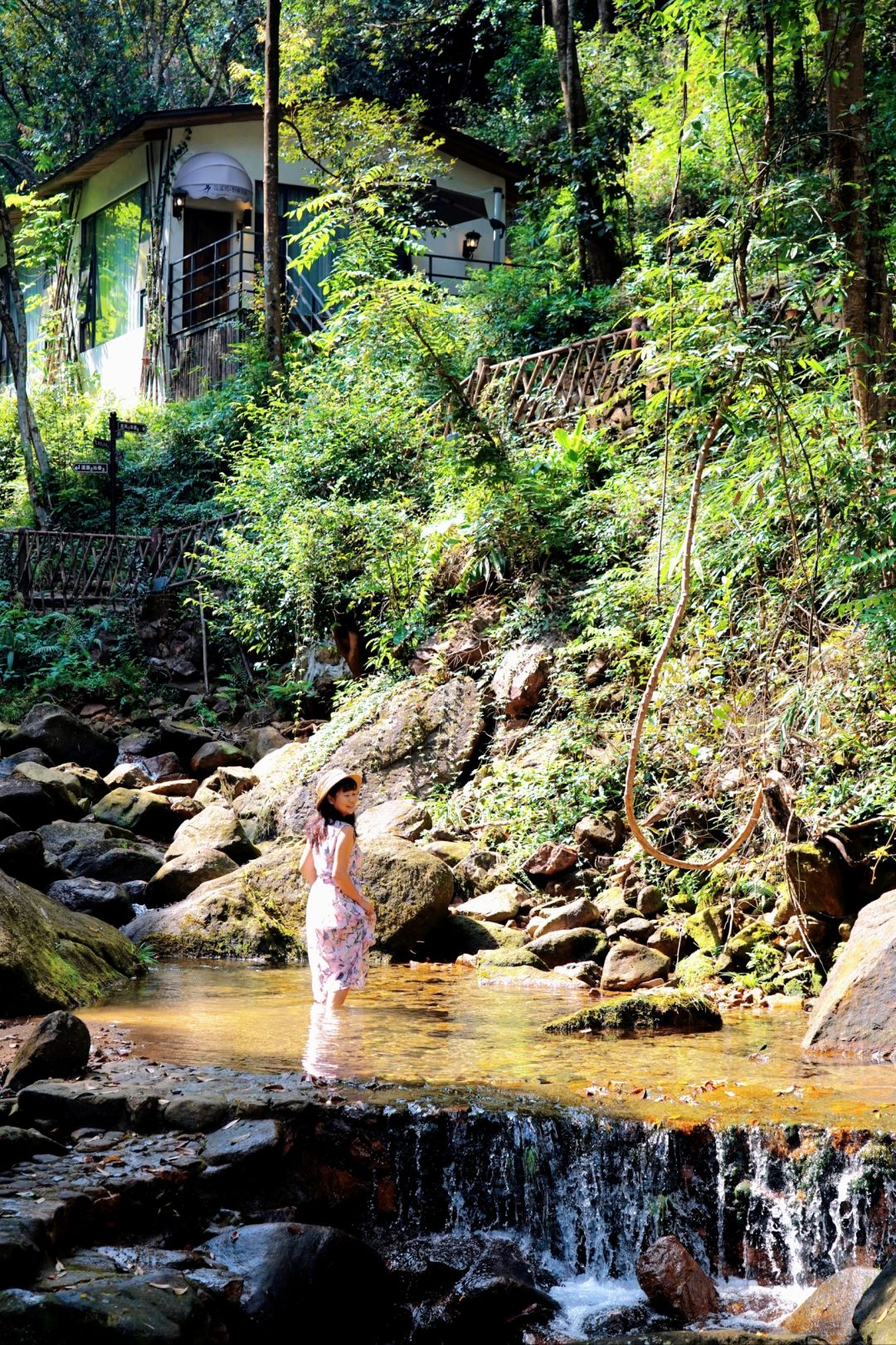 🔹 走出房间就能溯溪捉鱼,山泉水冰冰凉好舒服,溪流沿途还有木栈道、露营椅等贴心设施