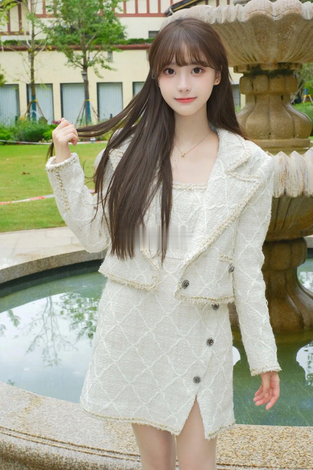 秋天适合当千金小姐 遇见了很好看的欧式风格喷泉 随便拍拍都很出片 又到了穿小香风的季节啦 早早准备好了套装 这套的菱格带点俏皮少女感 吊带裙的小开叉也很有设计感 享受秋天带来的松弛治愈 准备回家看鬼怪啦~ 衣服:JORYAweekend