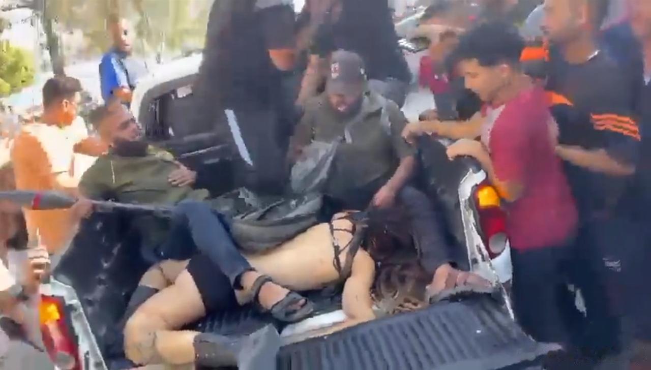 哈马斯把自己的妇女用黑袍裹得严严实实,却把“以色列”女性几乎全裸的尸体拉着游街,更让他们倒霉的是这名“以色列”女性居然是德国人Shani Louk,她去以色列参加和平音乐节不幸被这些人枪杀,她的身份是根据膝盖附近的纹身和头发颜色确认的。这事可咋收场?主动把那一车人枪毙估计德国政府可以考虑原谅。 即便哈马斯为了民族、领土、子孙后代在冲锋陷阵,但是一激动就把不读书不文明不体面的本性暴露出来了,从外表上就自我归类到恐怖分子阵营去了。