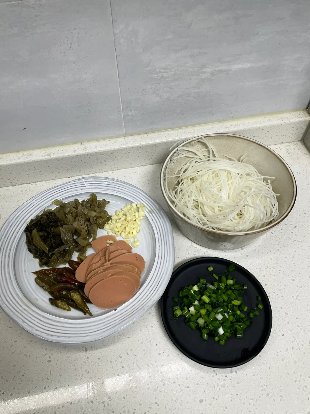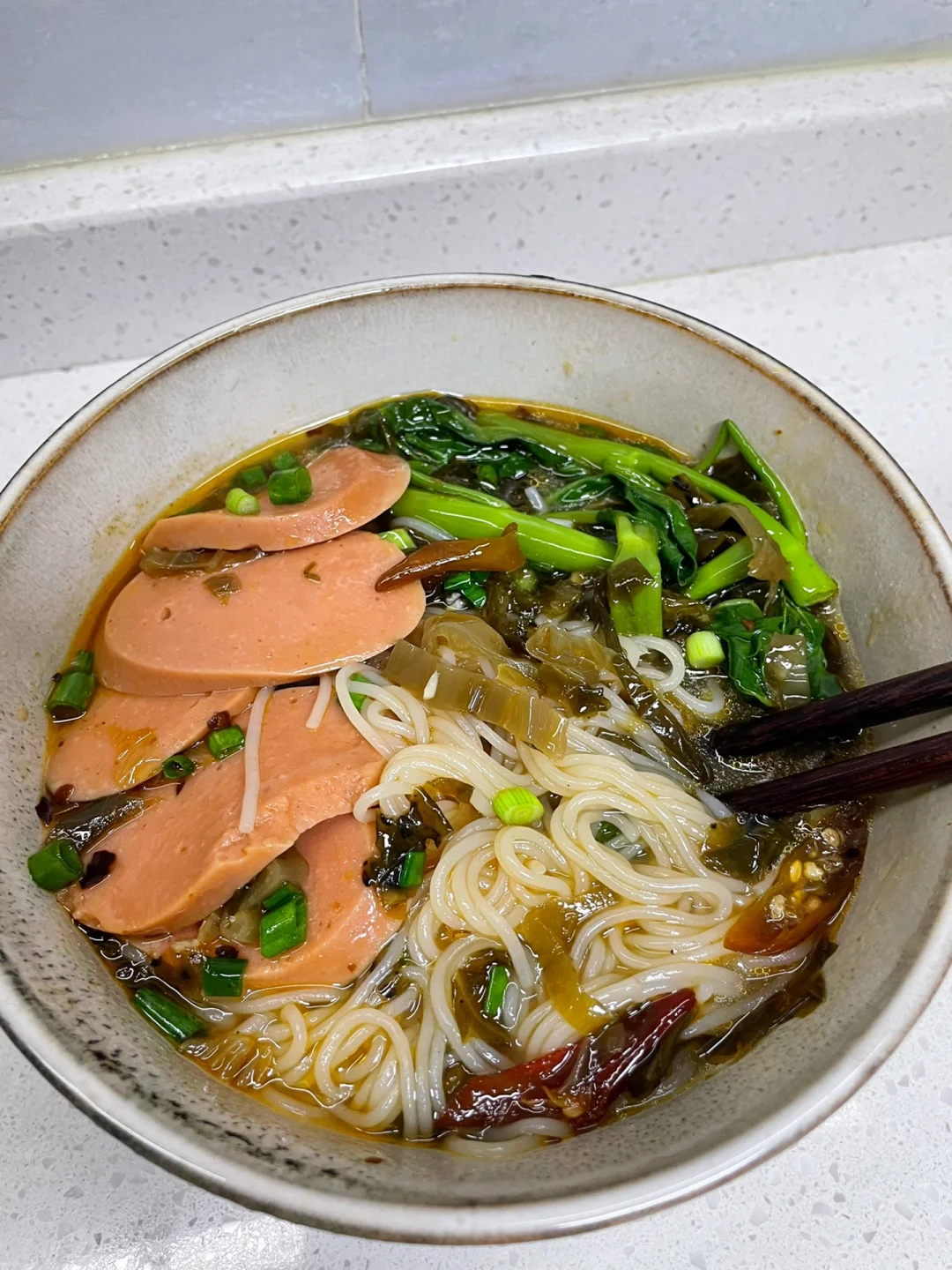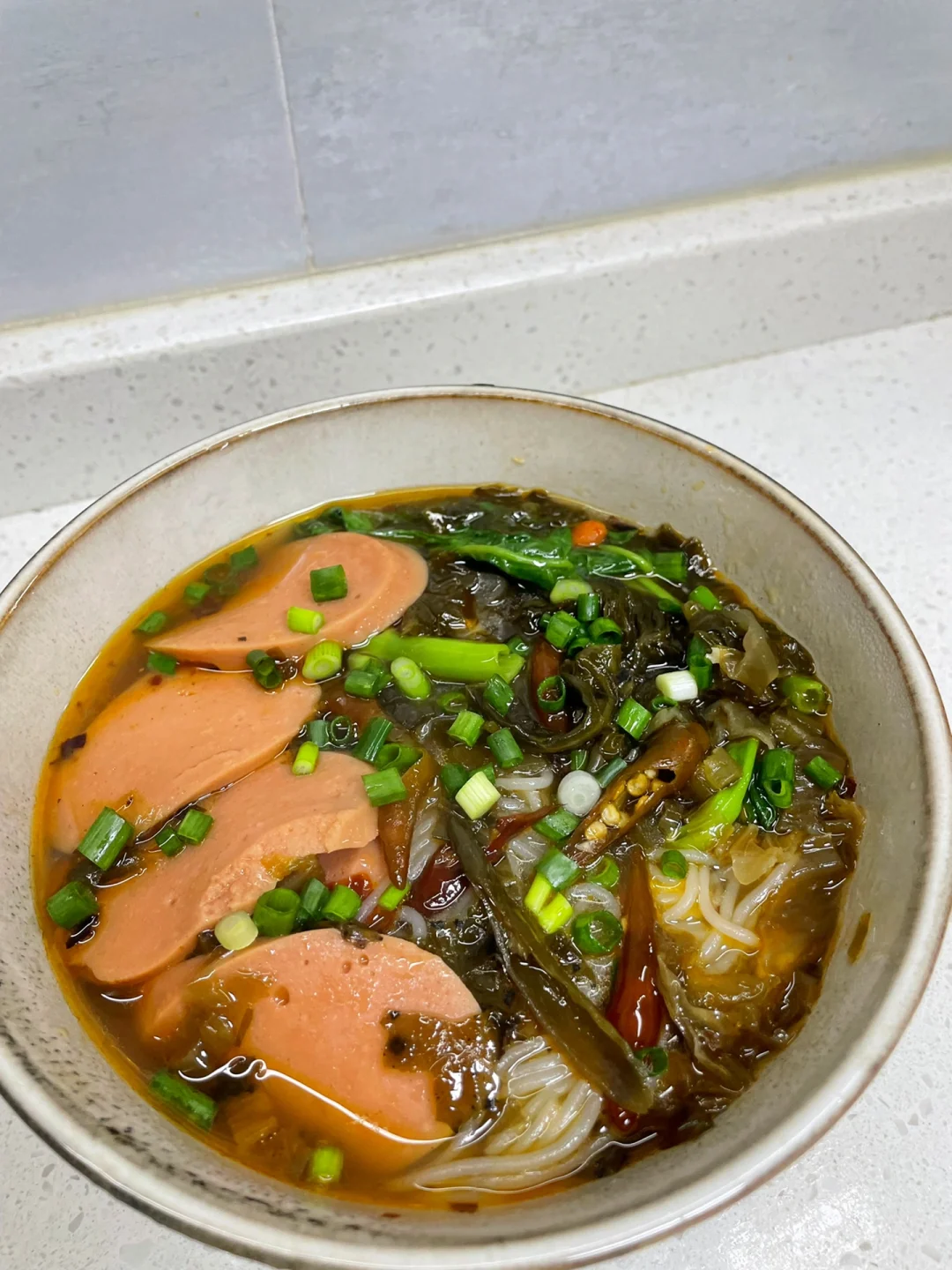 酸酸辣辣的酸菜火腿米线,超级开胃🤤