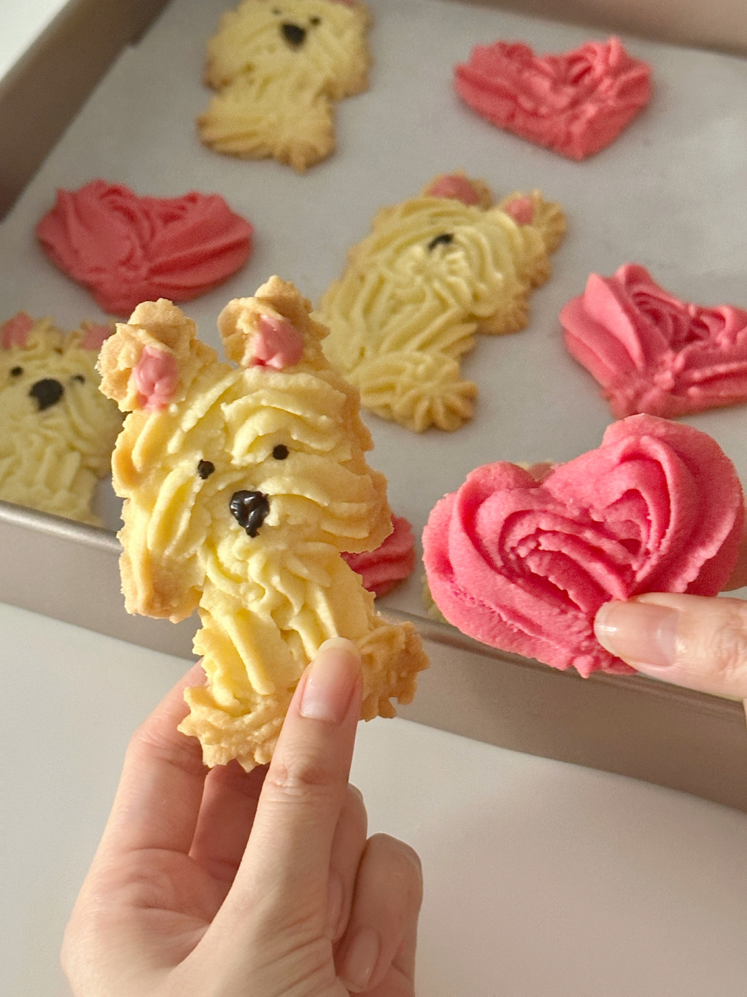 一起做可爱的西高地曲奇饼干和爱心饼干吧!有手就会!你的小姐妹来做给你吧![飞吻R][飞吻R][飞吻R]不仅可爱,还超级酥松奶香味十足哦[色色R]