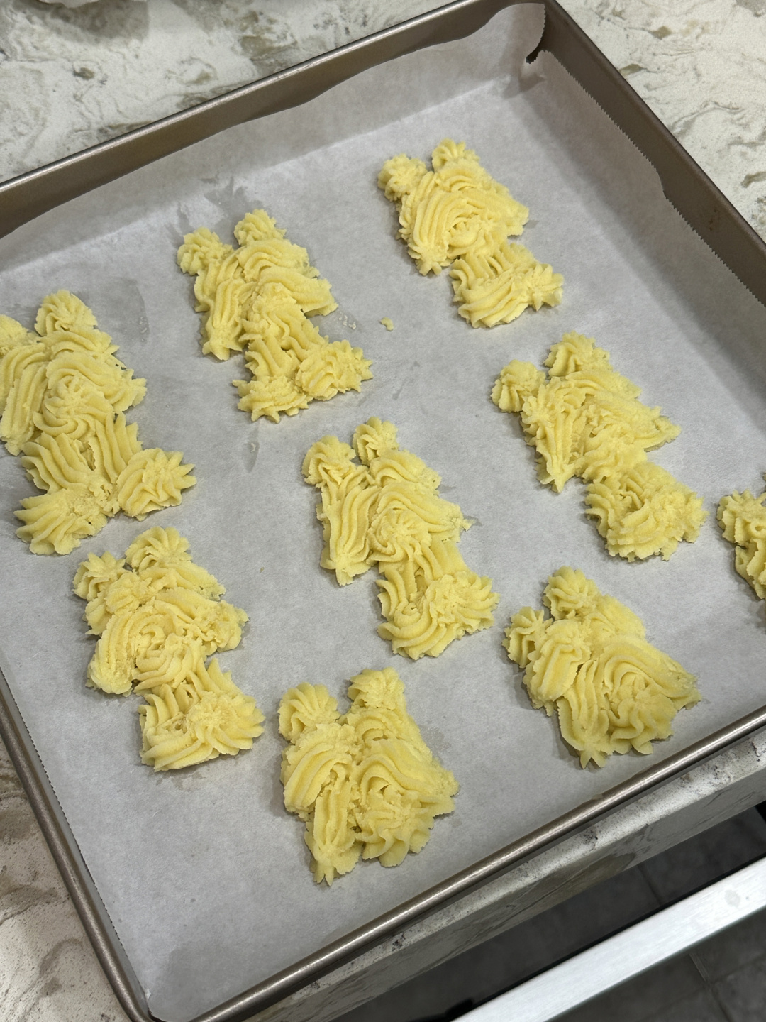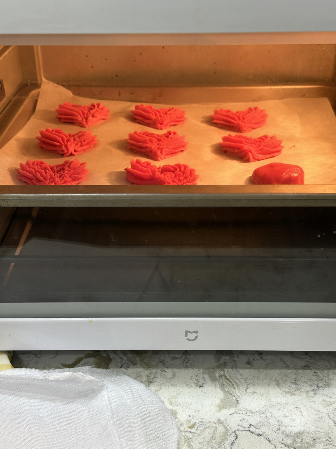 ⑥烤箱预热,150°烤20分钟左右(刚出炉的曲奇会软软的,等凉凉再拿起来哦,不然容易碎裂)