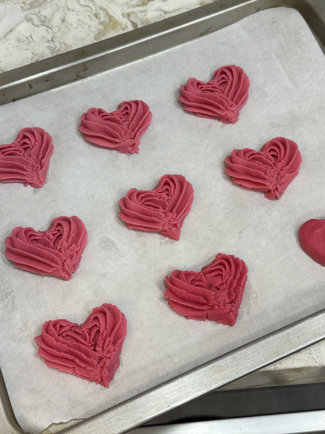 黄油150g,糖粉40g,盐2g,玉米淀粉35g,低筋面粉165g,玫红色色素,八齿裱花嘴