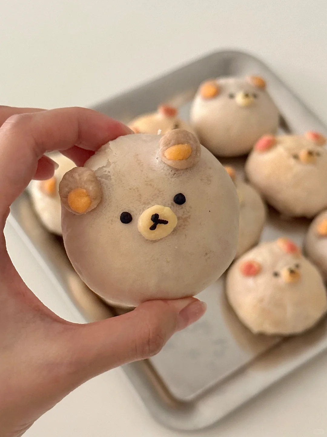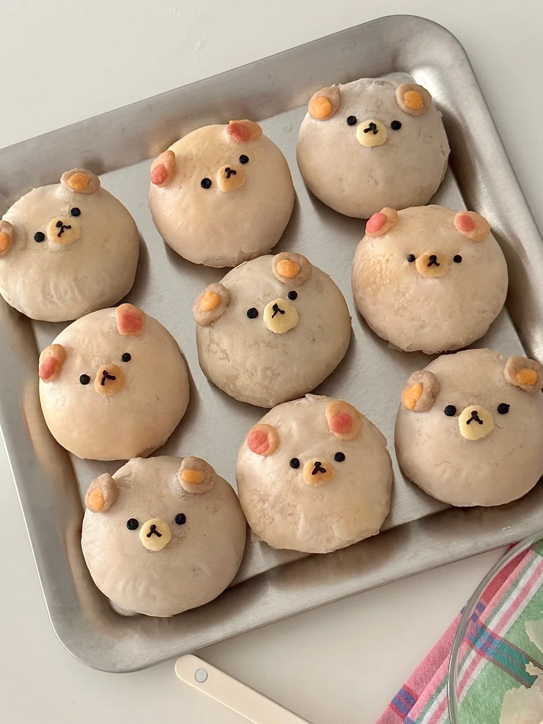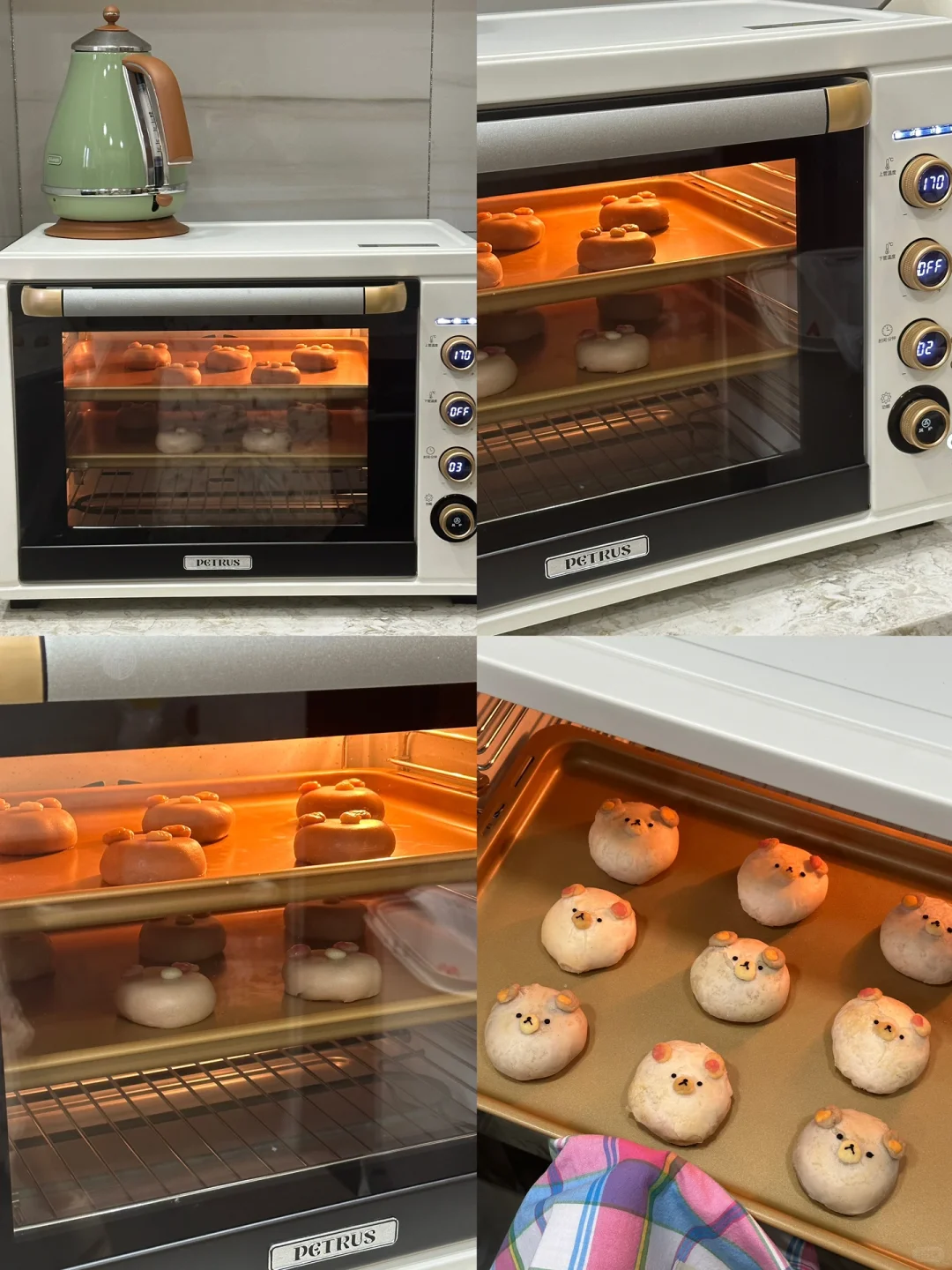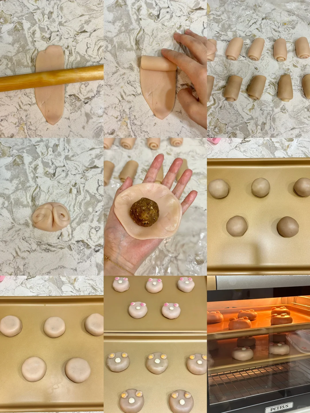 ⑨剩余面团做细节,烤箱预热风炉模式直接放入两盘同烤170°25分钟左右即可,出炉晾凉巧克力画眼睛鼻子嘴巴