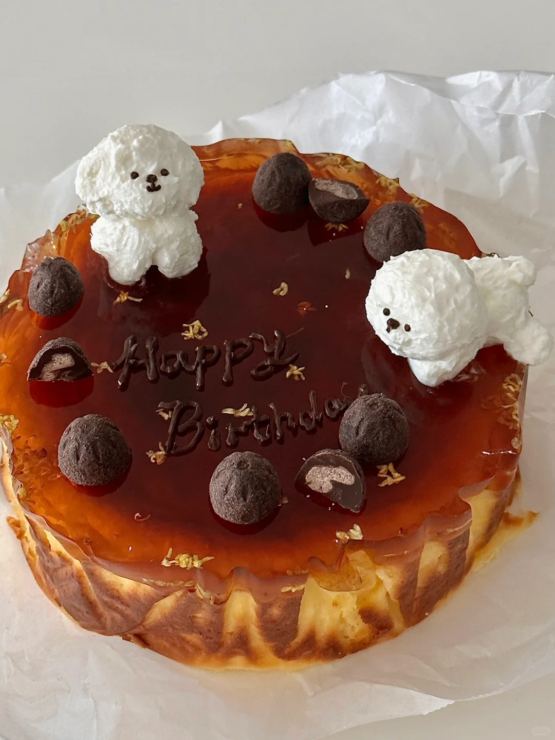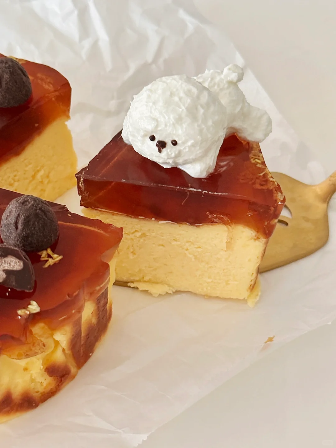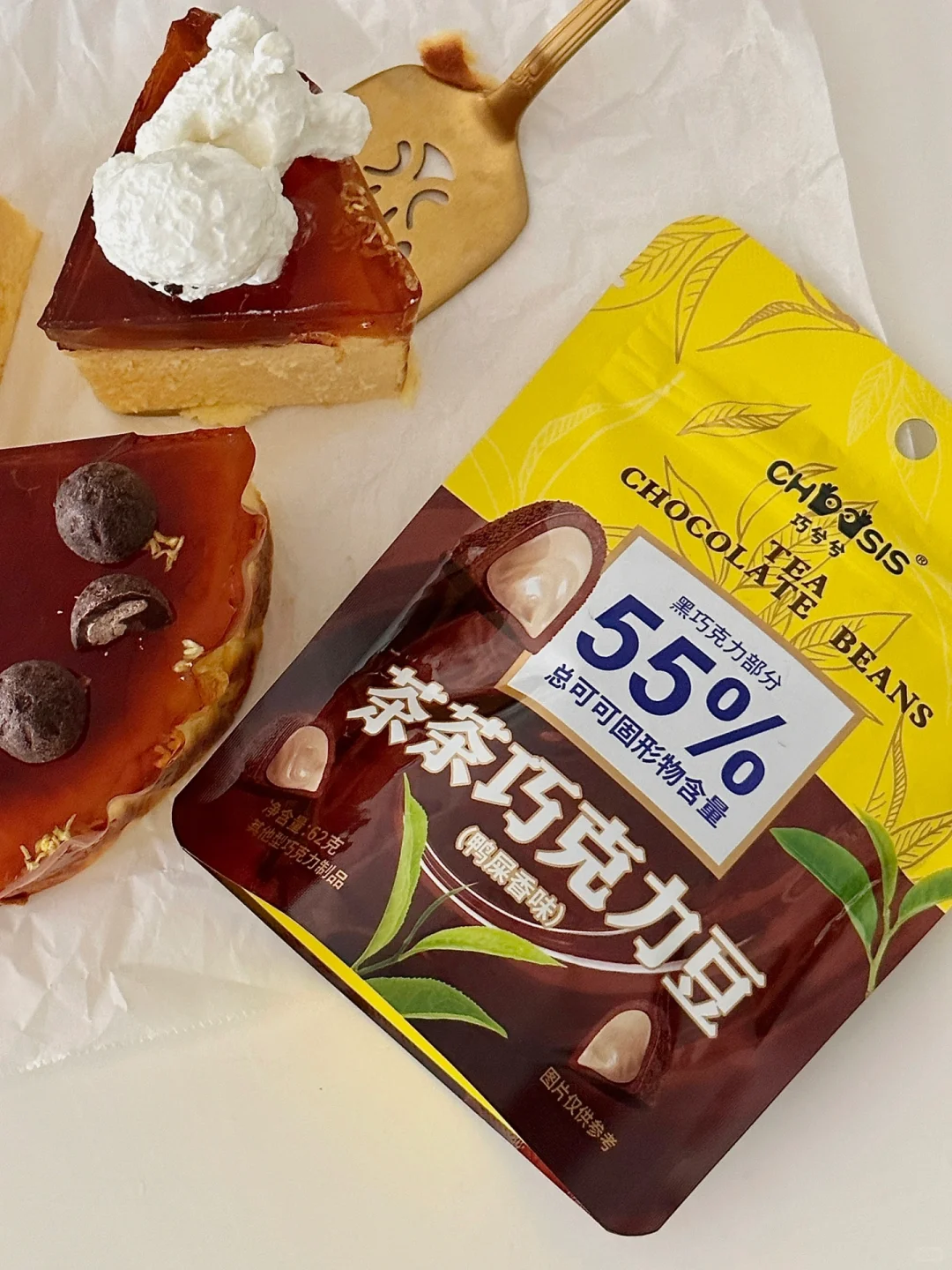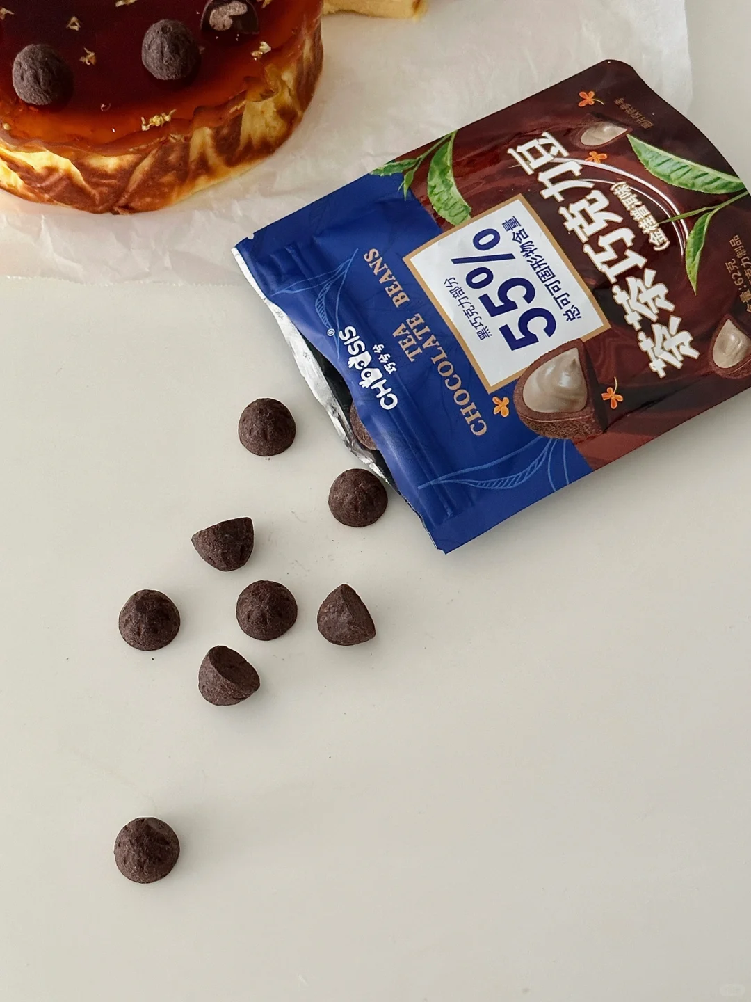 桂花普洱的清苦中和了巴斯克的甜腻,搭配起来真的刚刚好。点缀上茶香四溢的巧兮兮茶茶巧克力豆,又多了一层美味口感![飞吻R]
