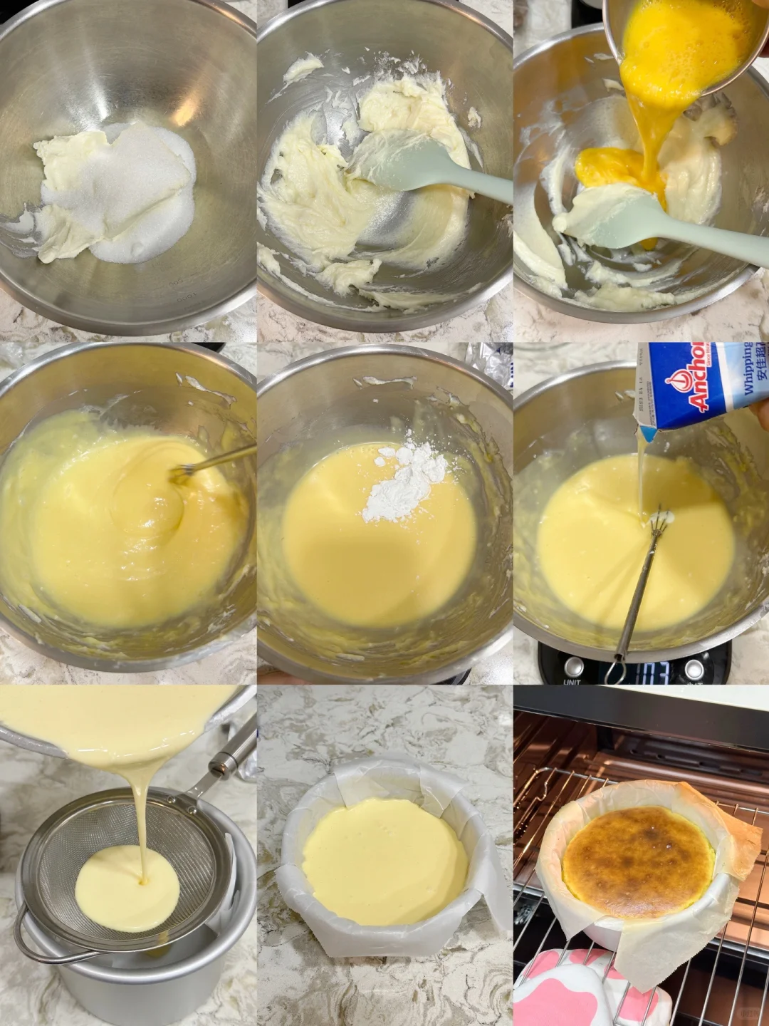 奶油奶酪 250g,淡奶油150g,蛋黄一颗,全蛋两颗,白砂糖40g,玉米淀粉 10g