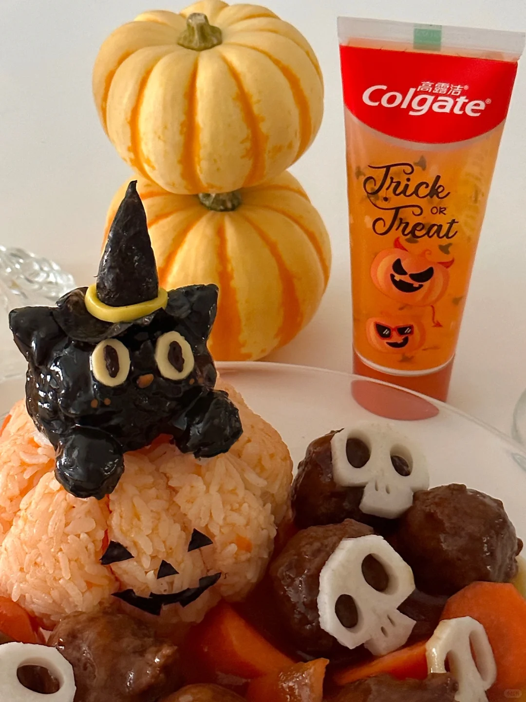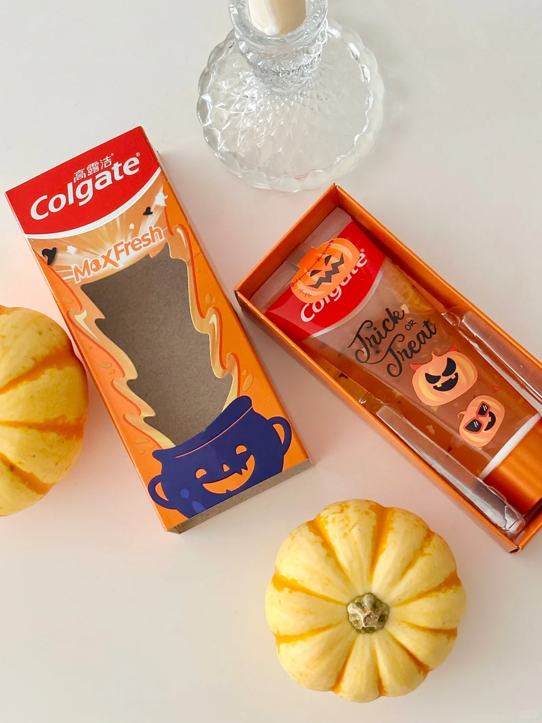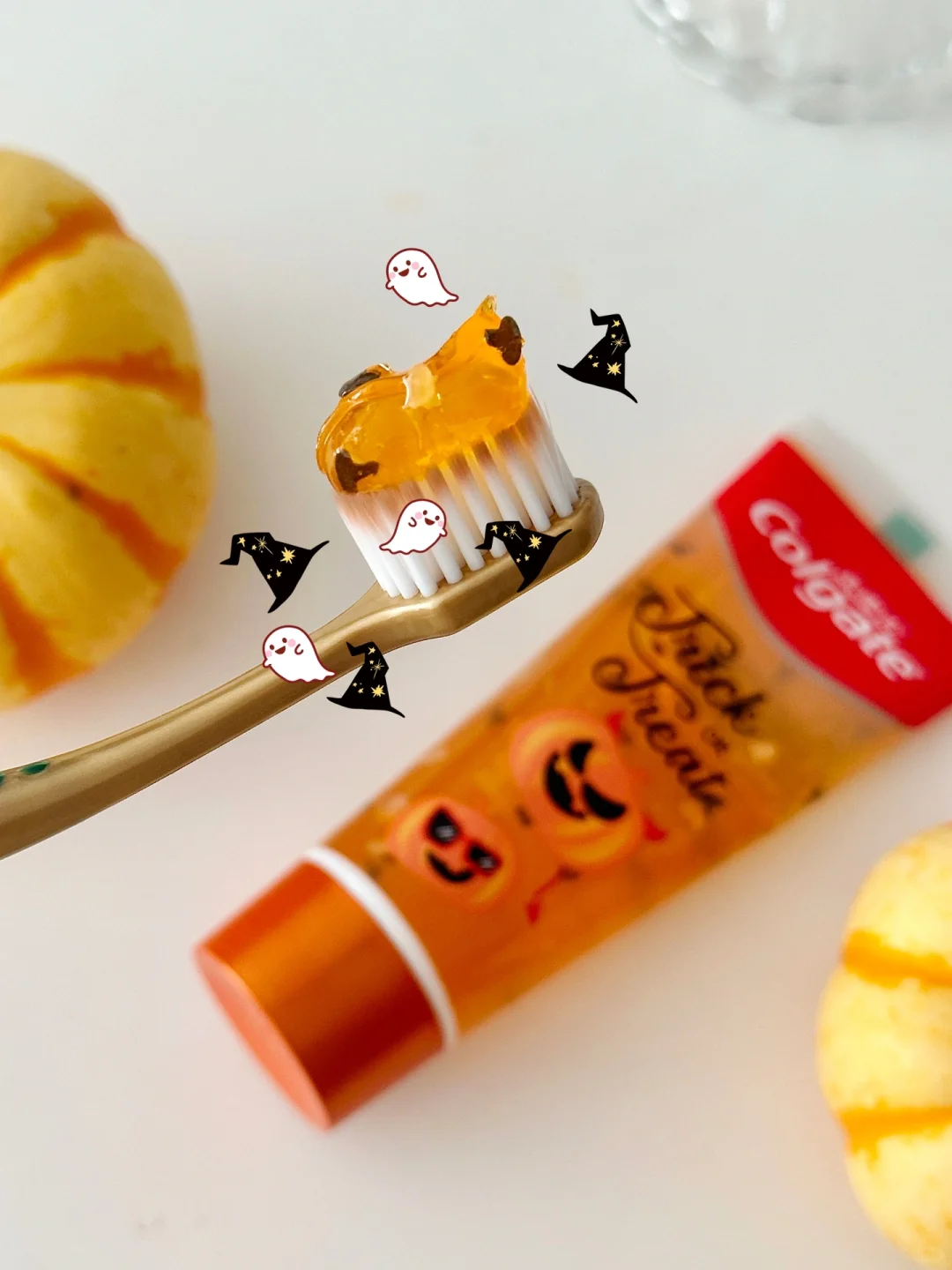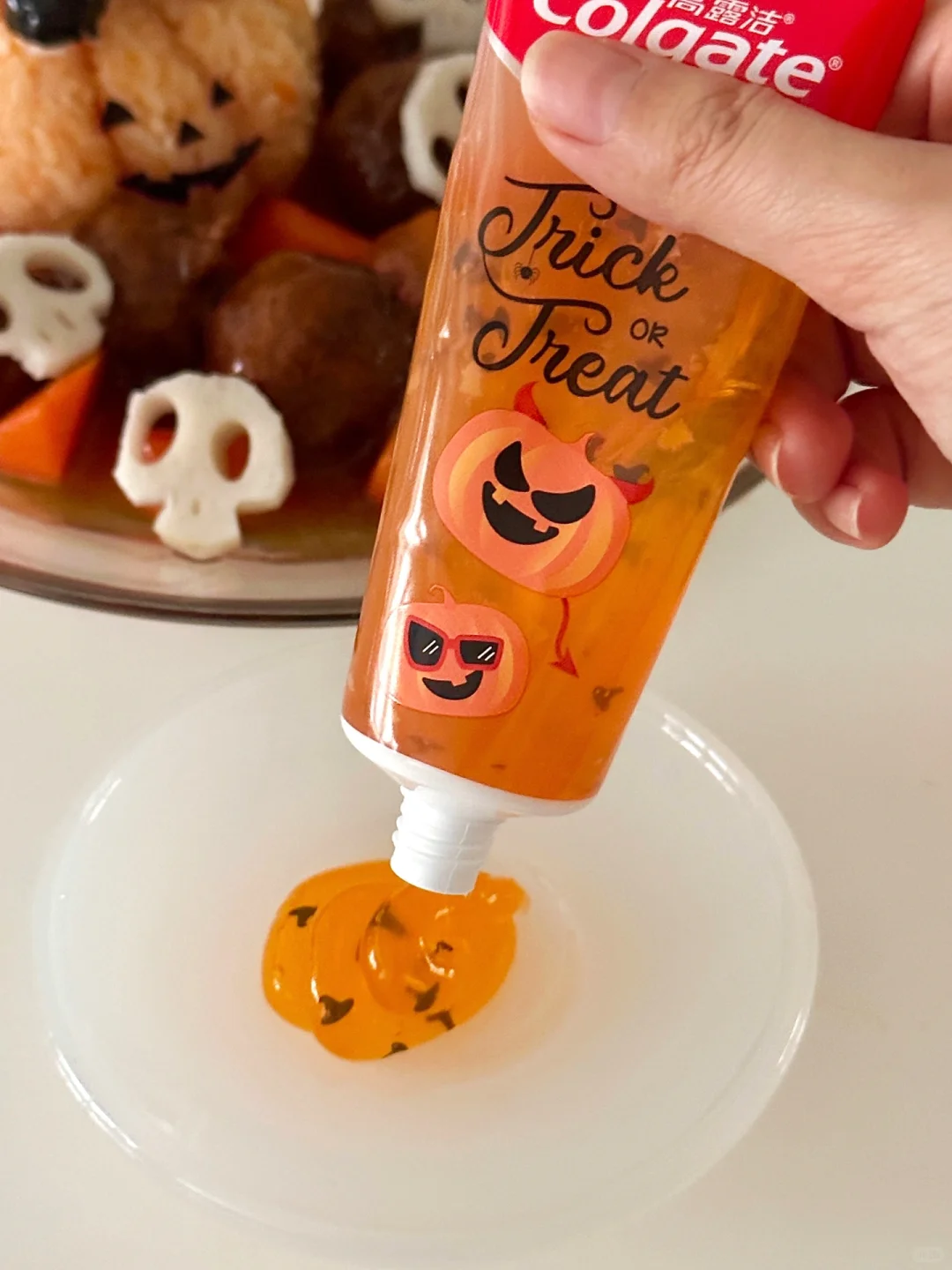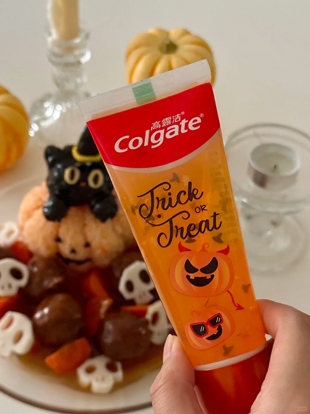 饭后记得用可爱的高露洁万圣节牙膏清洁牙齿呀~