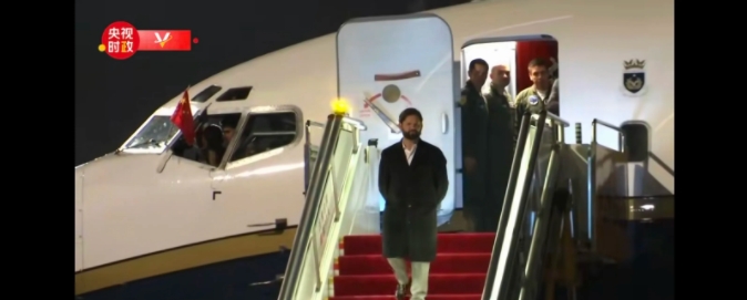 飞机从智利起飞之后,中途多次经停其他国家,经过30多个小时的飞行之后抵达中国成都。今天晚上飞机抵达了北京首都国际机场。