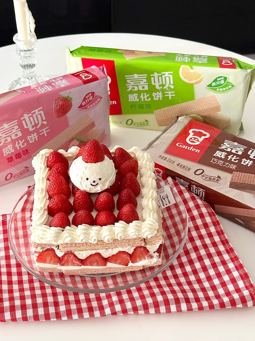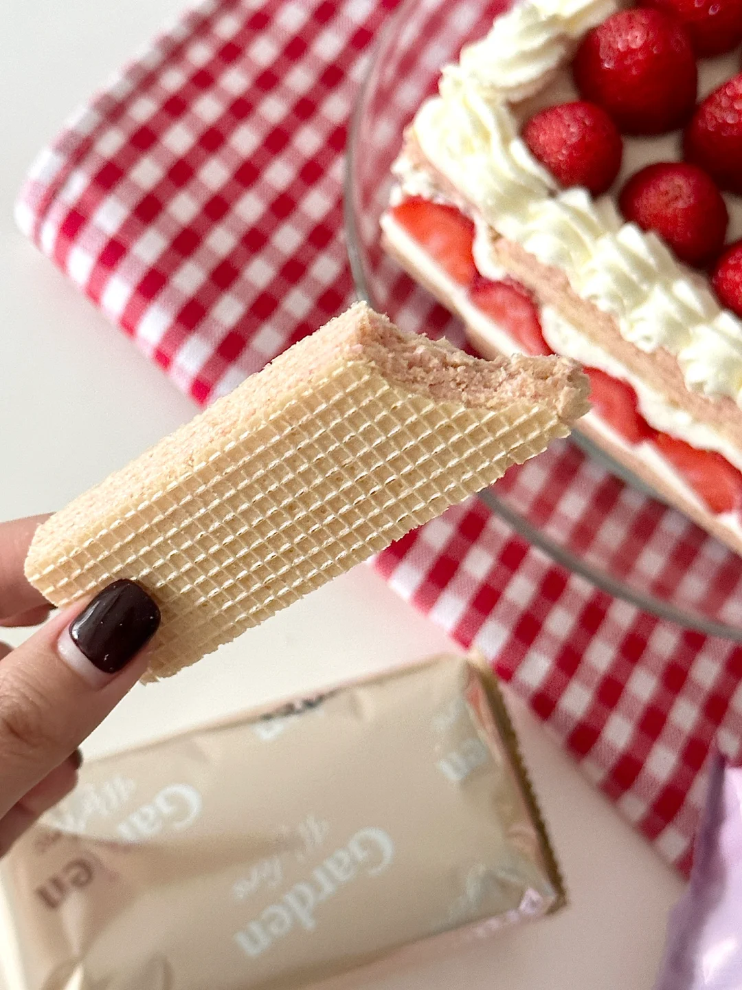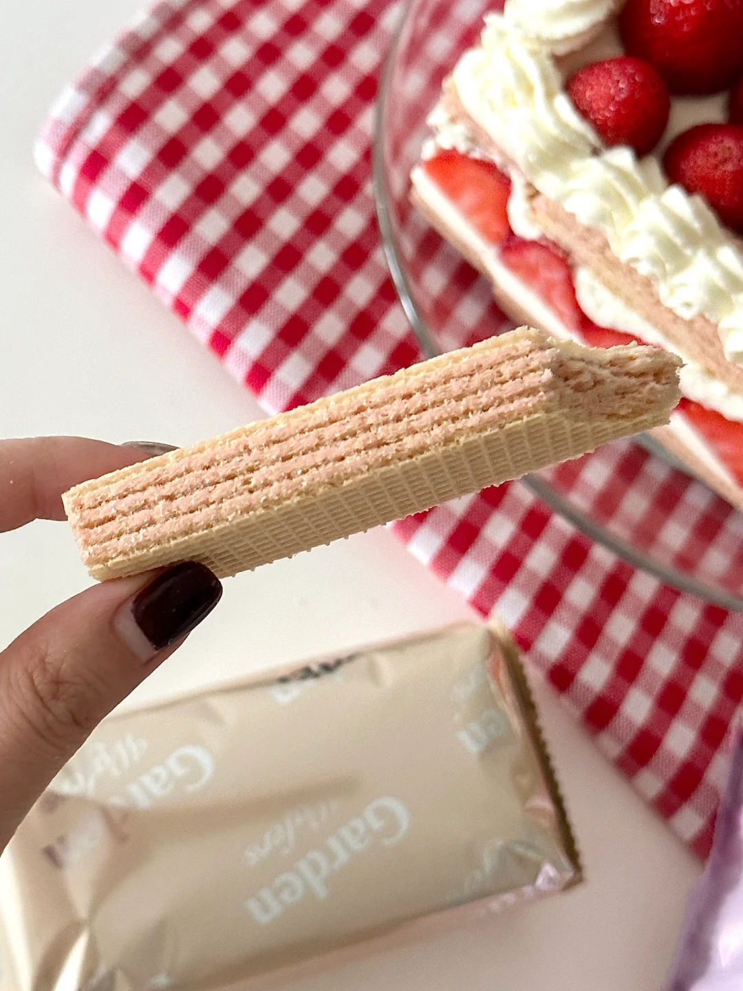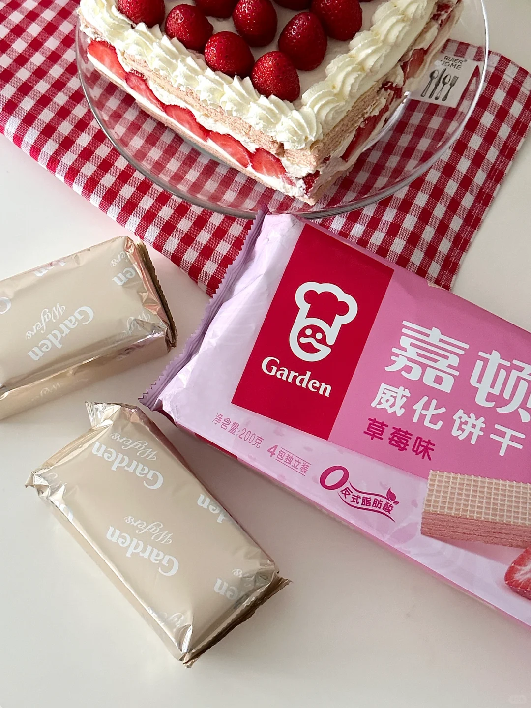 这次是用草莓威化制作的草莓蛋糕!浓郁的草莓香~酥松的威化~绵密的奶油和酸甜可口的草莓简直不要太搭啦~