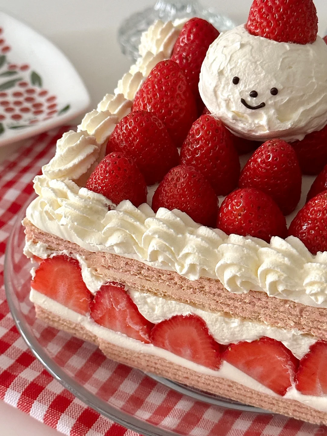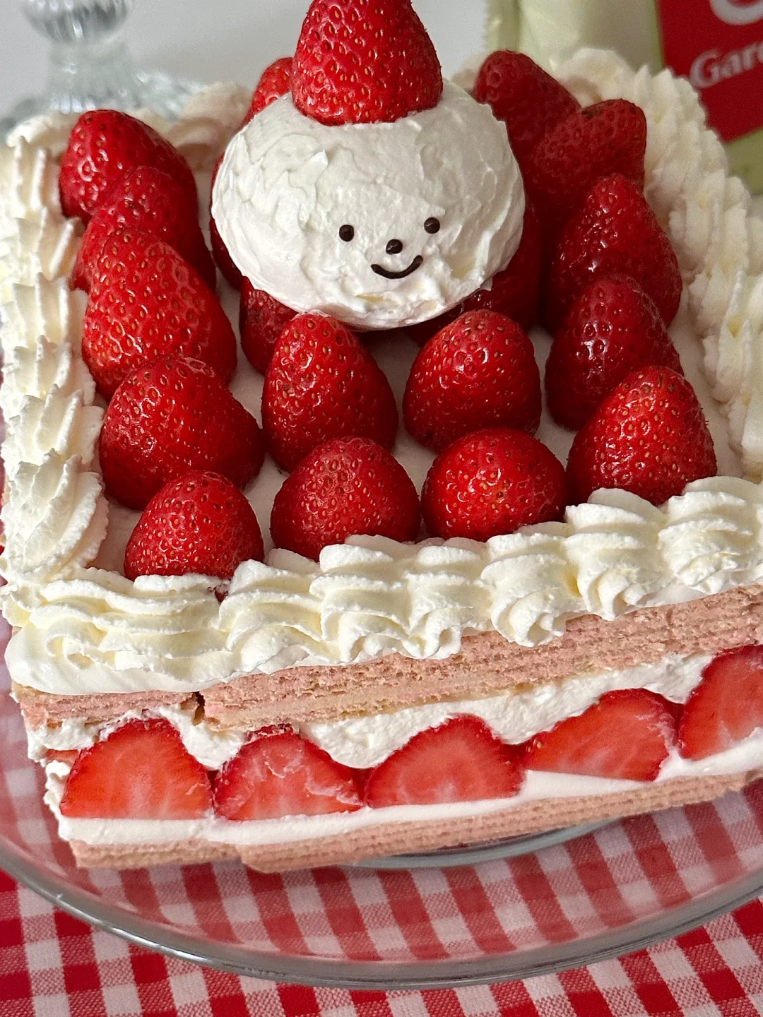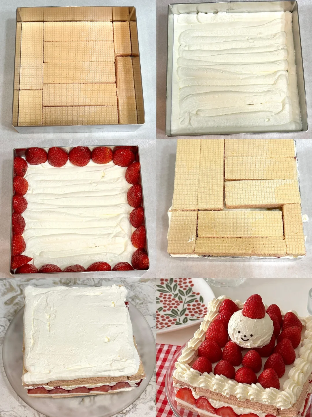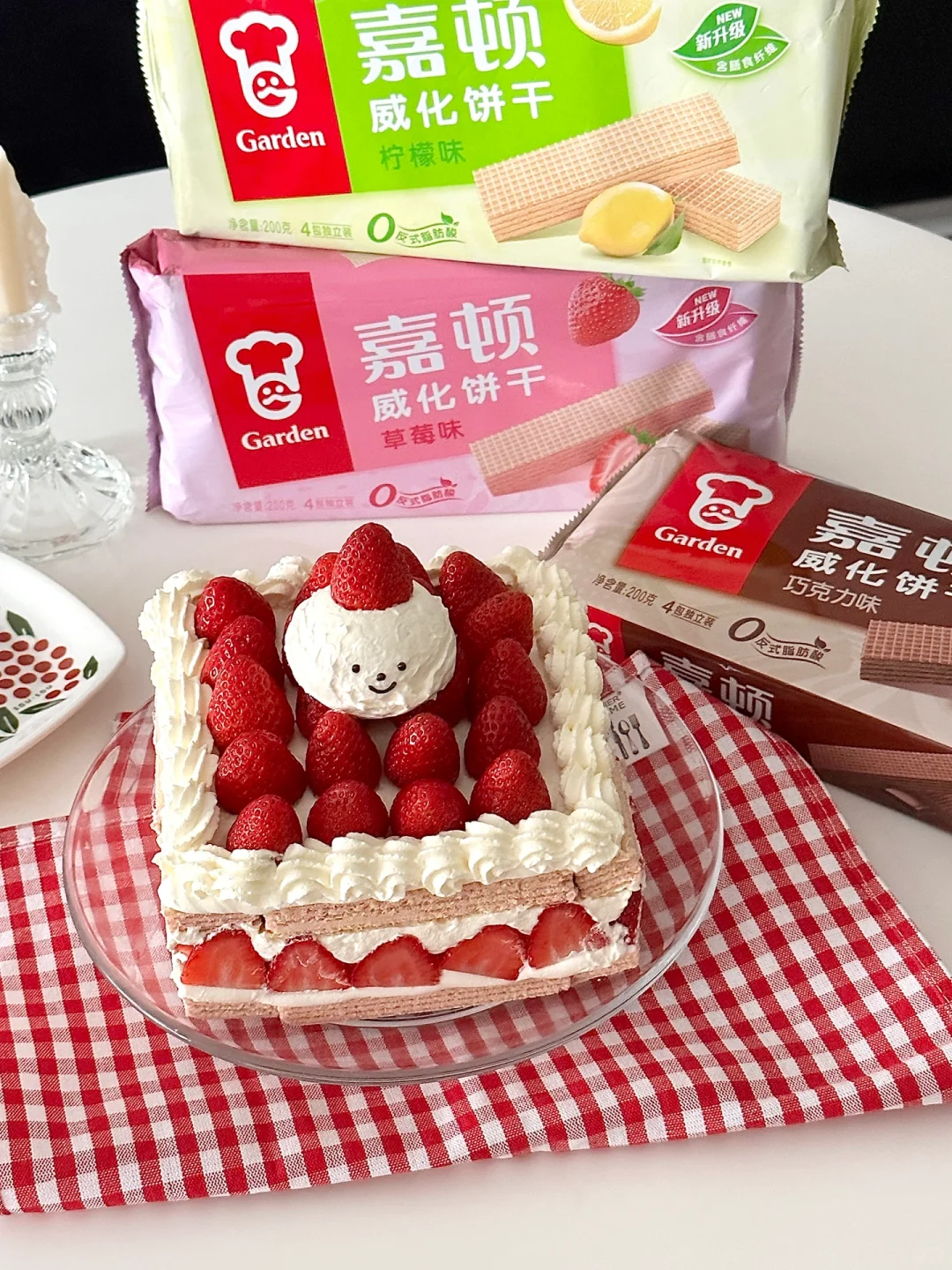这次是用草莓威化制作的草莓蛋糕!浓郁的草莓香~酥松的威化~绵密的奶油和酸甜可口的草莓简直不要太搭啦~