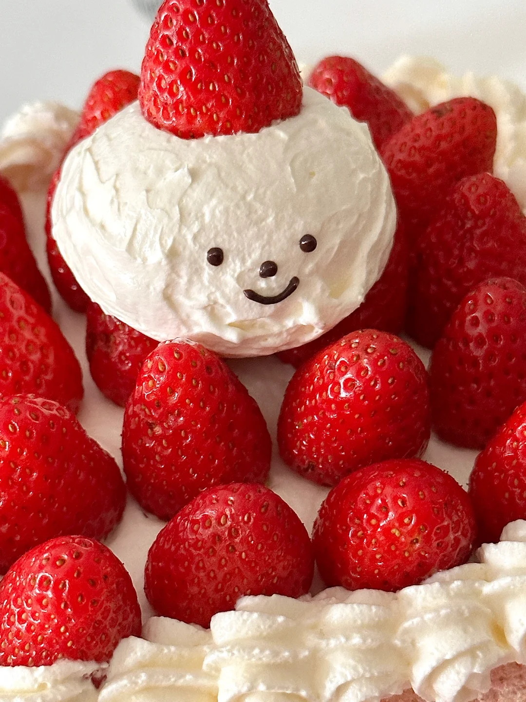 ④平铺奶油,草莓,最后用六尺裱花嘴围边。