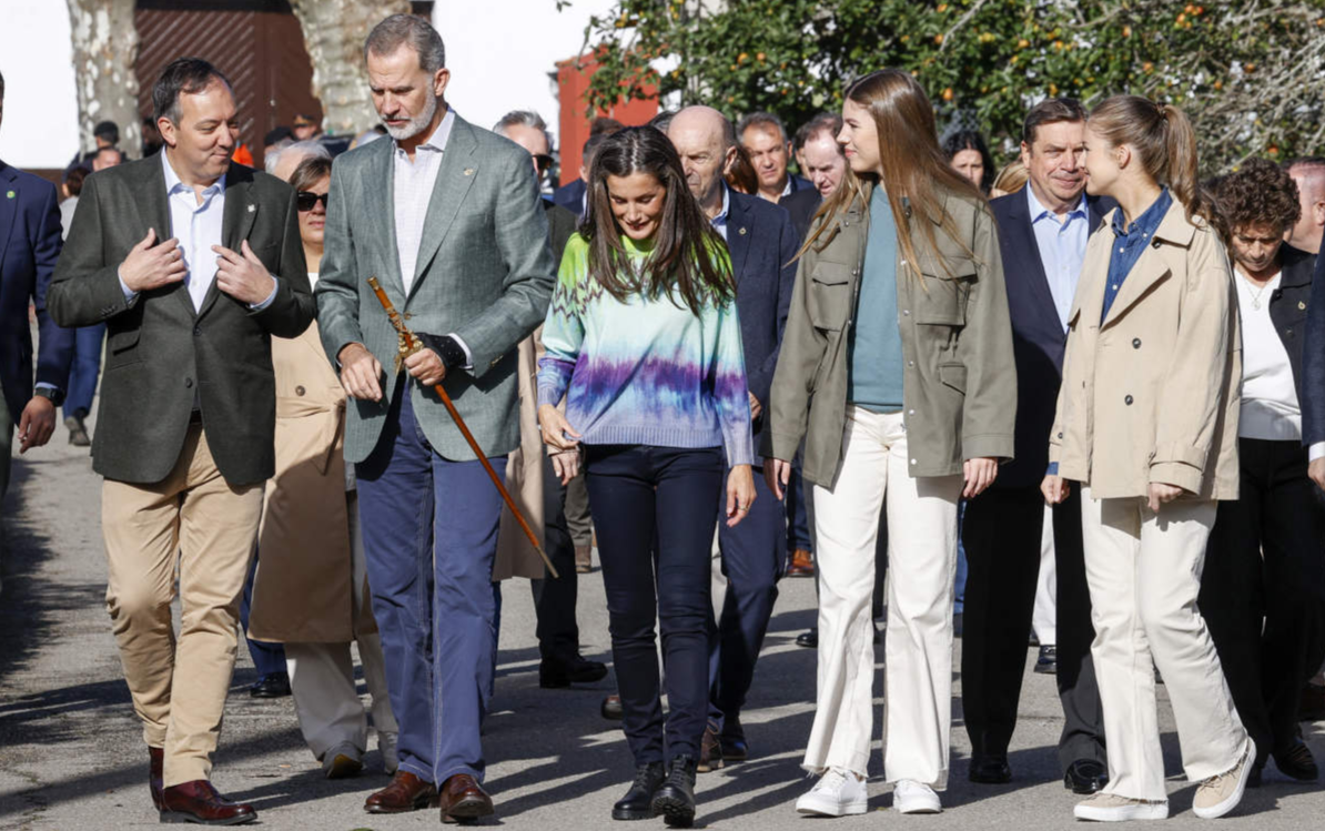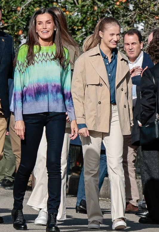 西班牙姐姐花公主登热搜,不是因为颁奖,也不是漂亮裙子,而是又穿姐妹装差距立显,同穿风衣小白裤,脚踩平底鞋,这气质与个头的差距就出来了,女王储还是没有妹妹个头高哟!