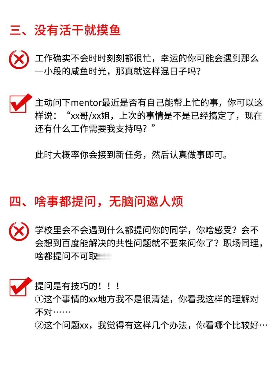 👉主动问下mentor最近是否有自己能帮上忙的事,你可以这样说:“xx哥/xx姐,上次的事情是不是已经搞定了,现在还有什么工作需要我支持吗?”