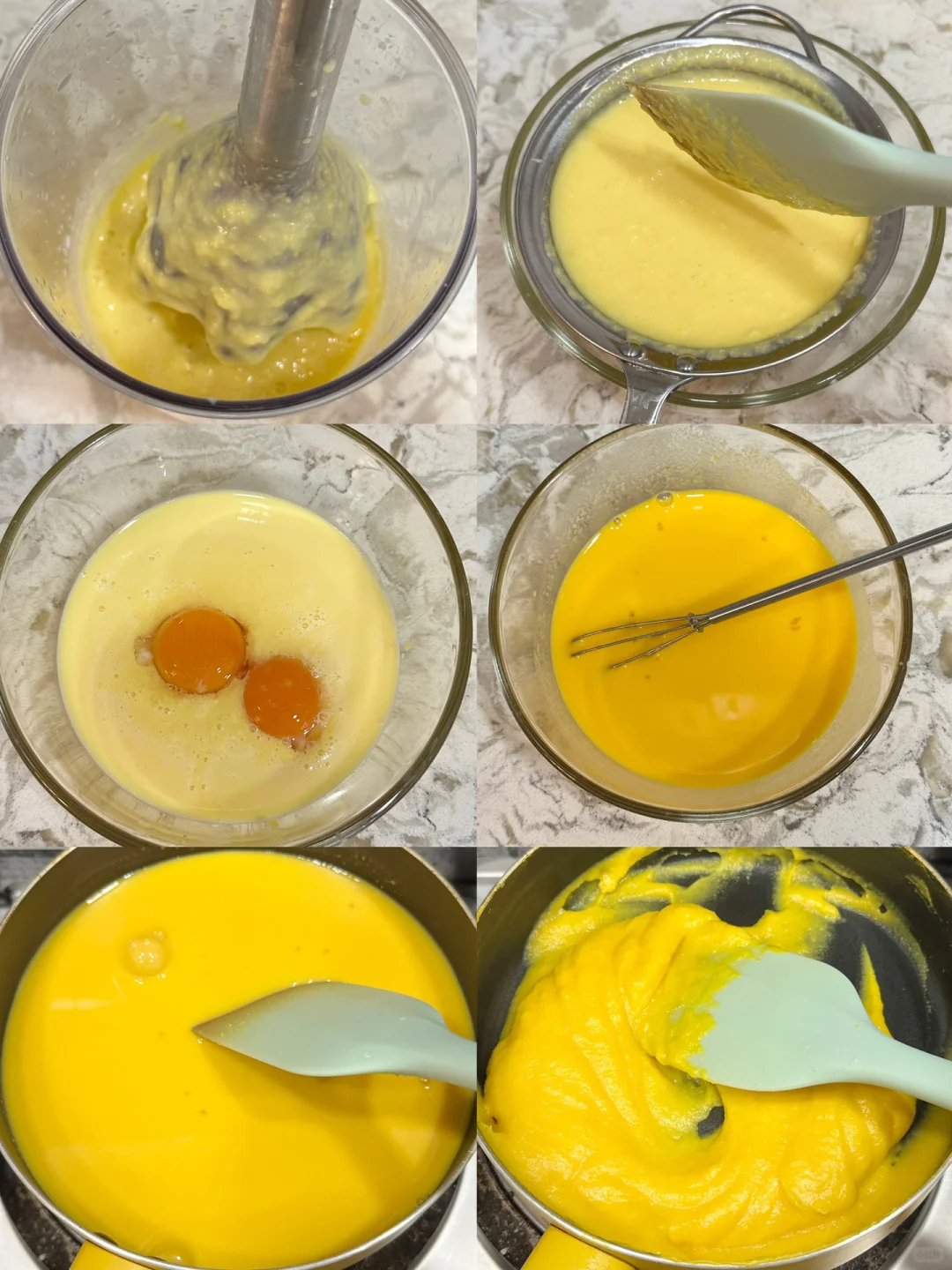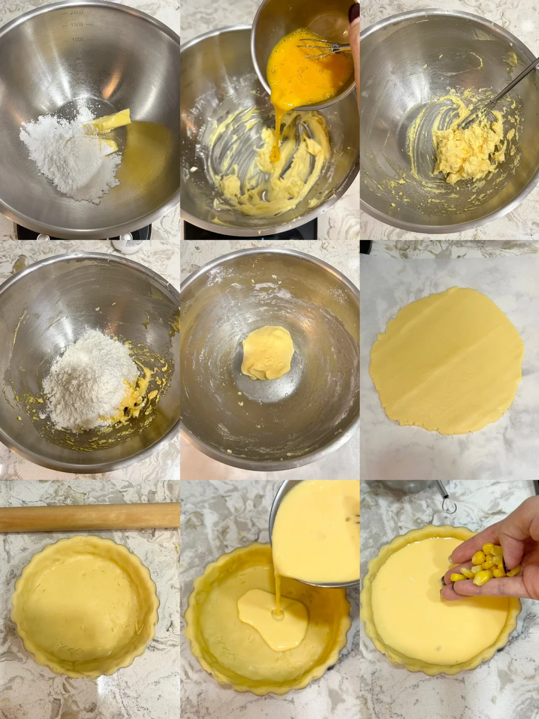 ⑤制作好的玉米布丁糊倒入挞皮里,烤箱预热175°30分钟左右