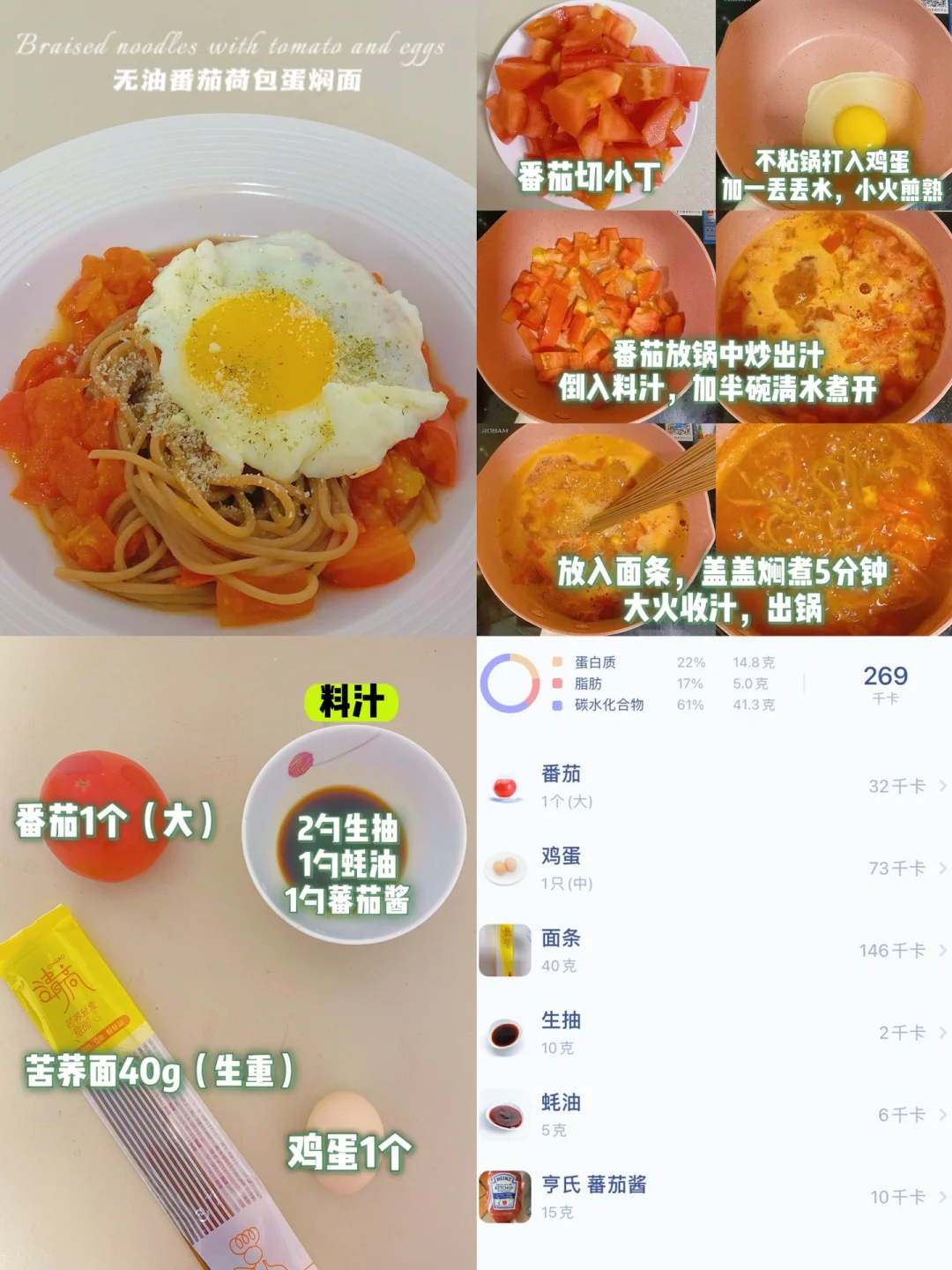 🍝番茄荷包蛋焖面(269卡/份)