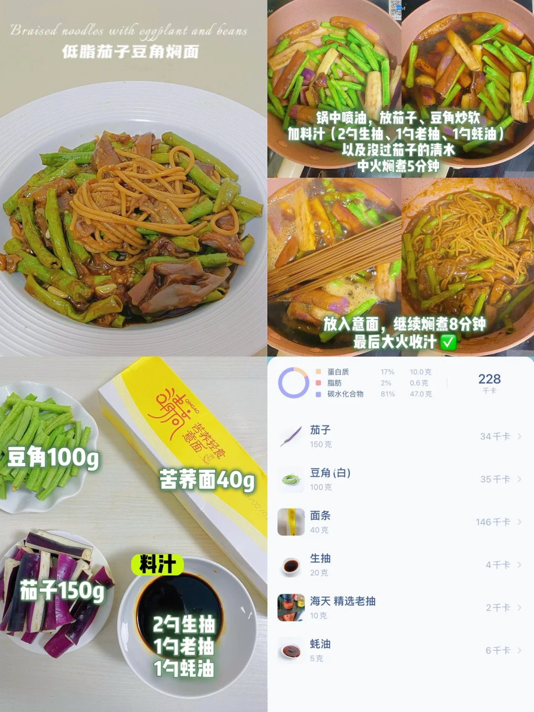 🍝茄子豆角焖面(228卡/份)
