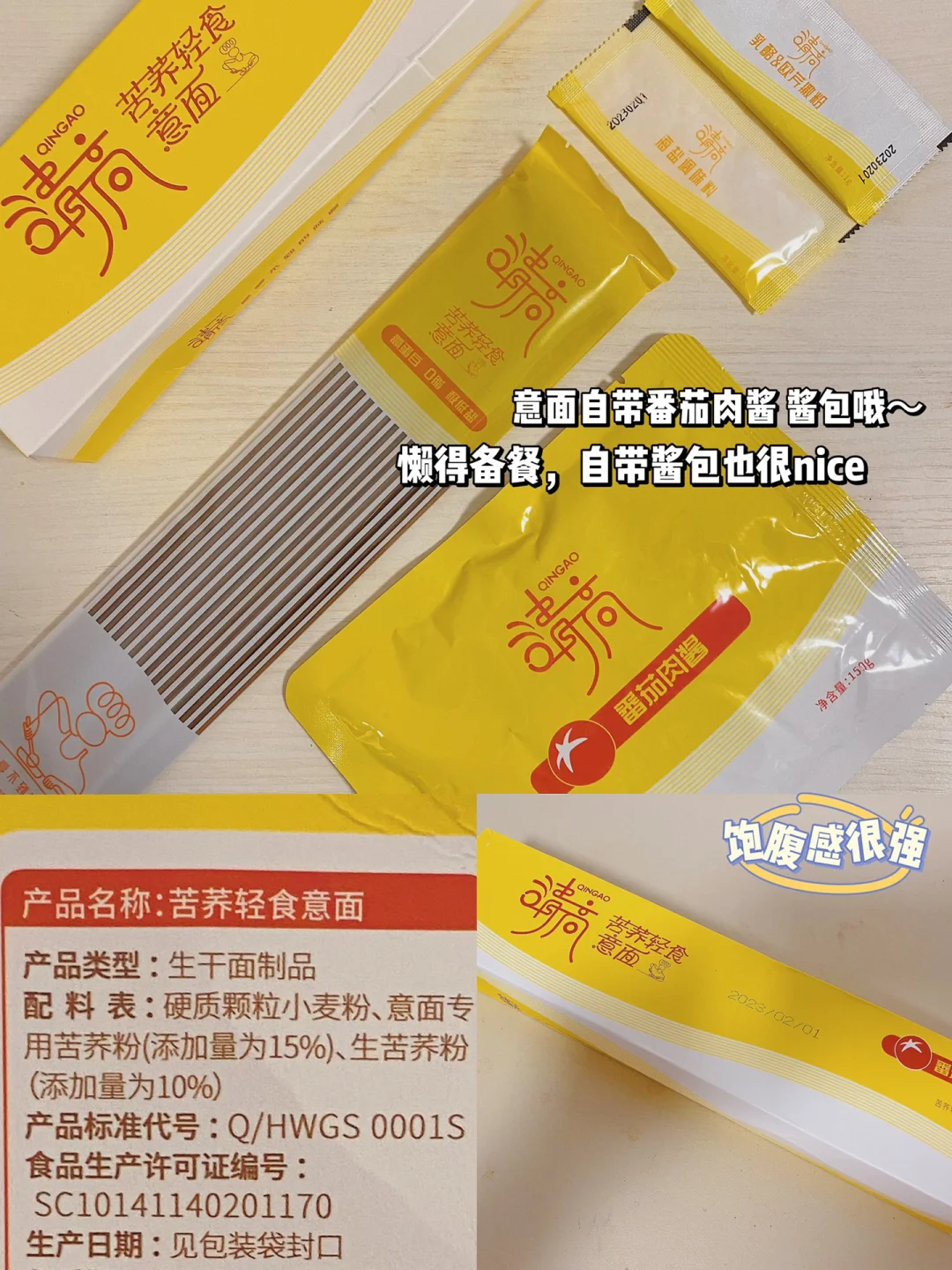 🌈面条全麦面、荞麦面都🉑️,我用的清高苦荞轻食意面,黑苦荞意面,高蛋白0脂,饱腹感很nice~