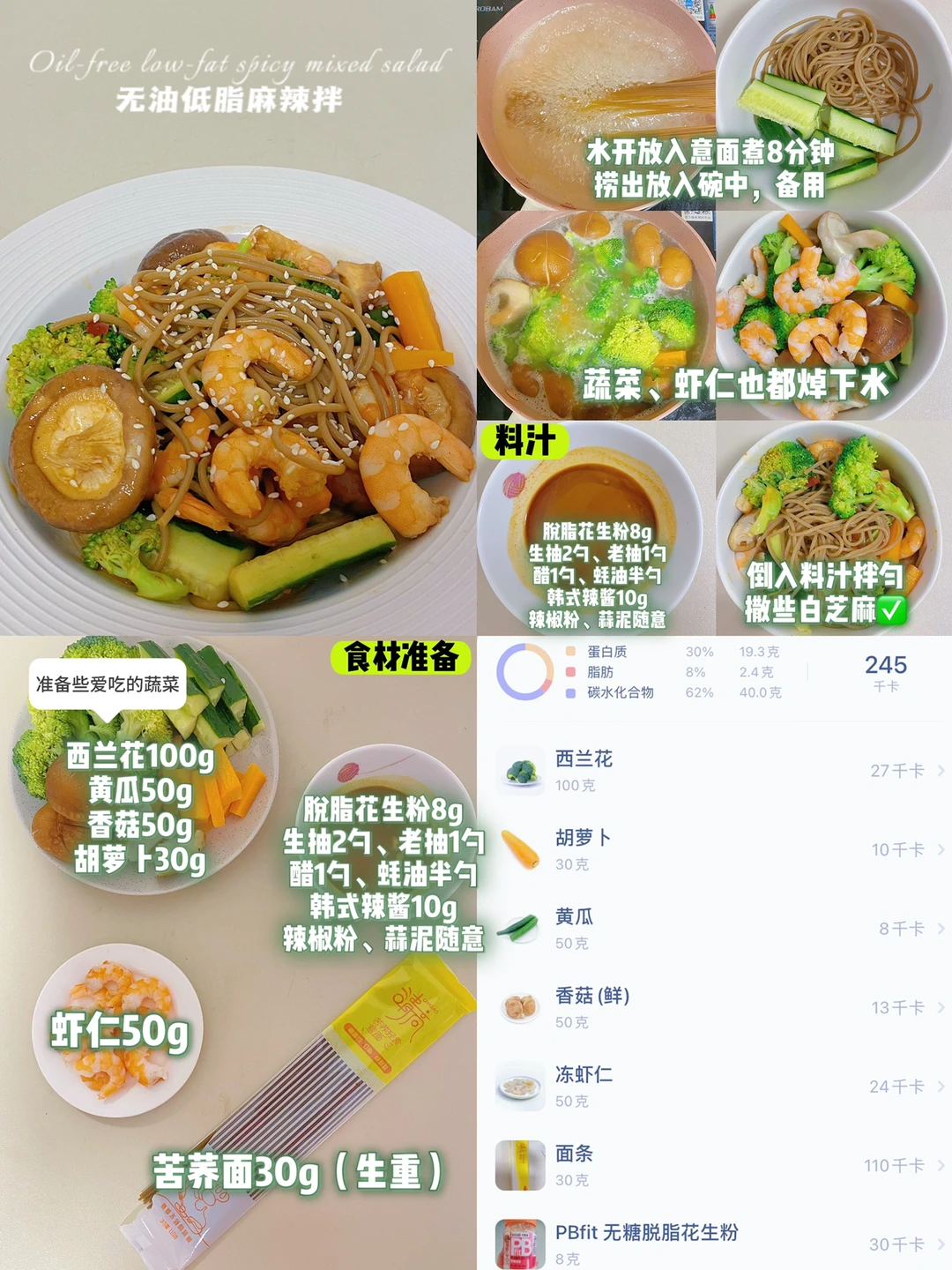 🍝无油低脂麻辣拌(245卡/份)