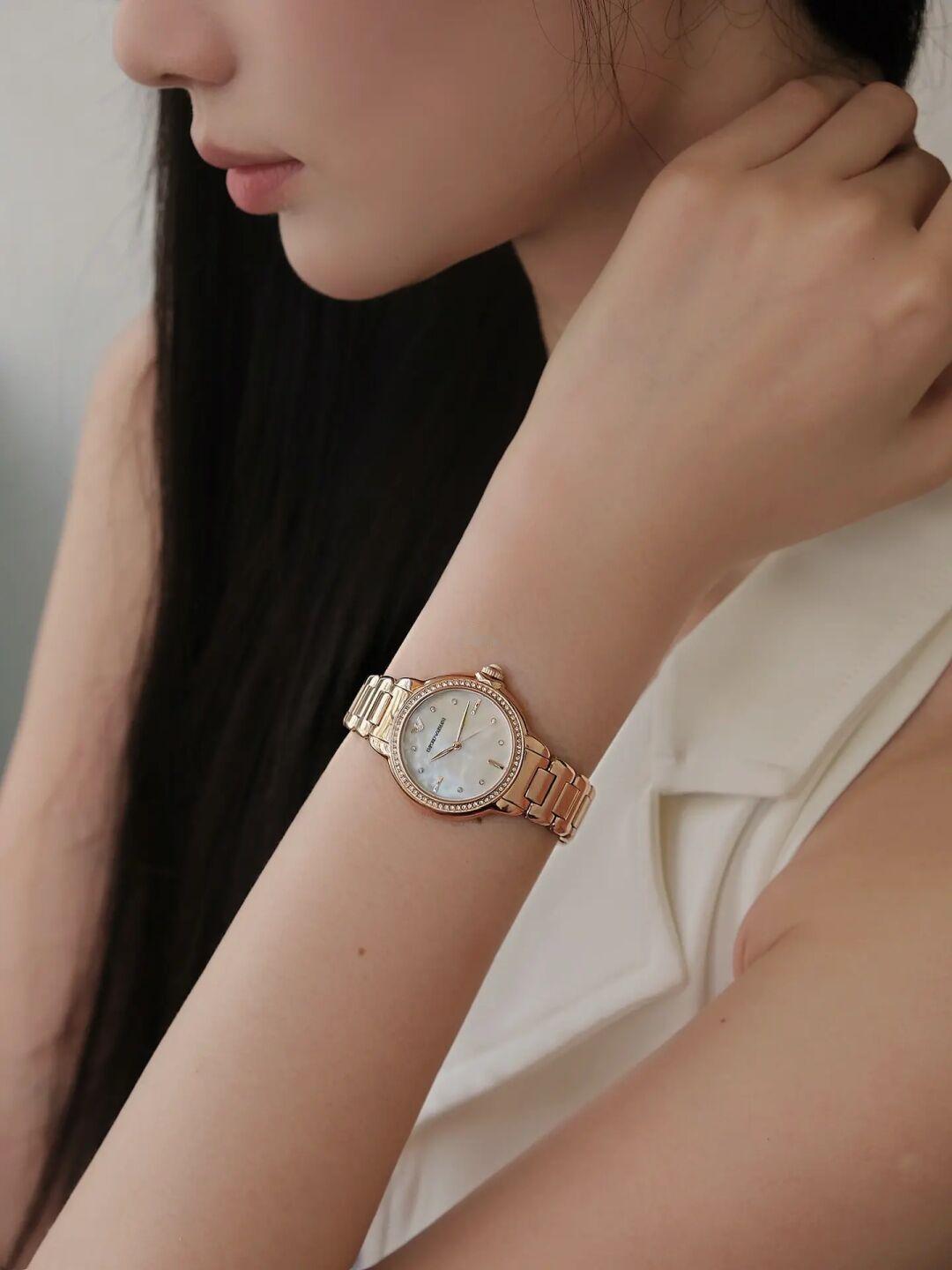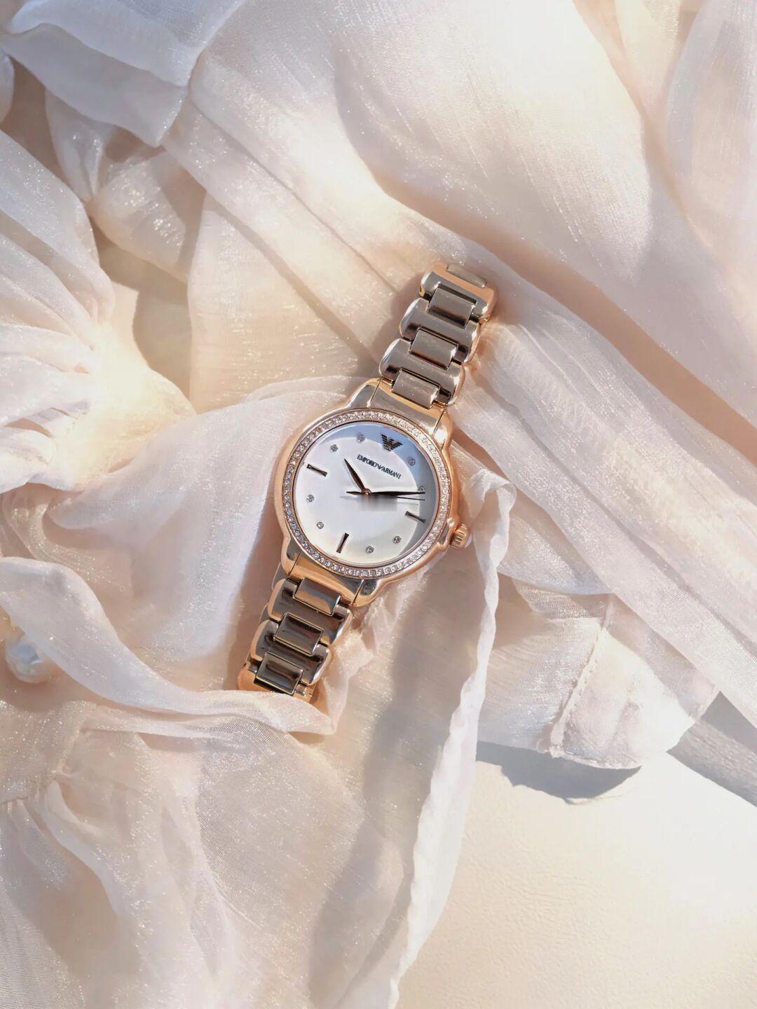 喜欢夏天的光照 风的气息,蝉的鸣叫 找一个闲暇的午后 倚在树荫之下 抚去聒噪,享受这片刻的安宁 就让阿玛尼白月光手表陪伴我 让时间定格在这美好的一刻 镶满钻的表圈搭配流光溢彩的贝母表盘 金属表带在阳光的照射下尽显轻奢质感 低头凝视间,这一刻封神