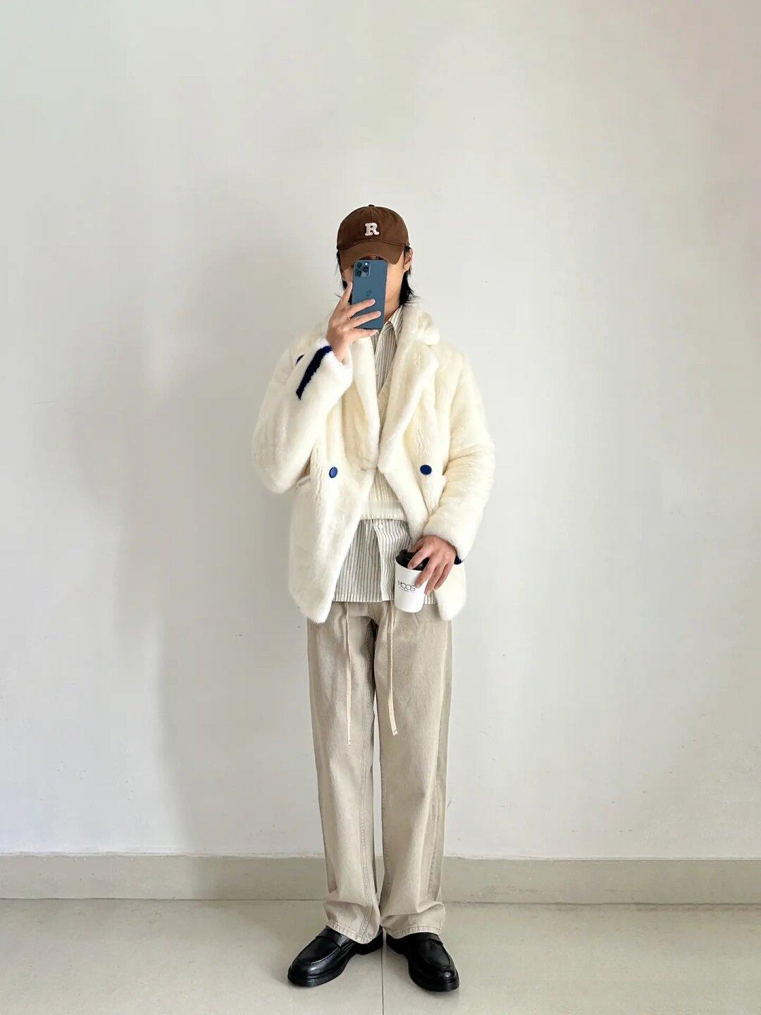 Hello,分享穿搭 秋冬高级且自带氛围感的单品当然是皮草啦 今天分享两套米白色皮草的叠穿Look 天然皮草的细节跟质感真的高级感满满 🥼:HUSET JOSEFYN