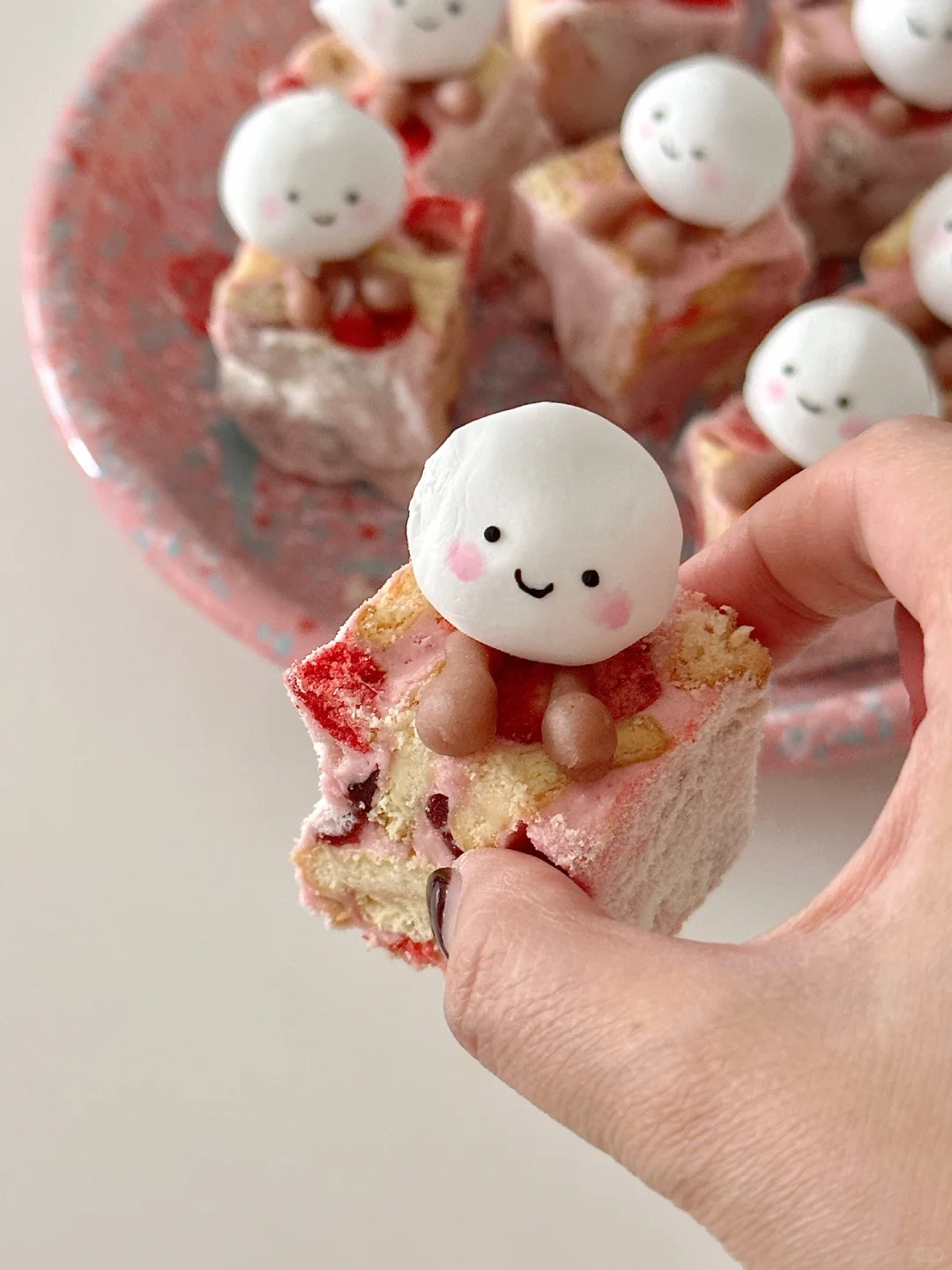 ⑦巧克力在球形棉花糖上画出眼睛嘴巴