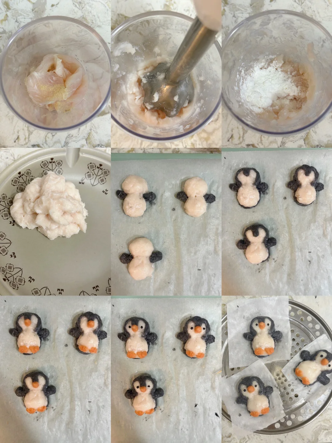 ⑤小企鹅上锅蒸熟(不水煮是防止细节部分散落)